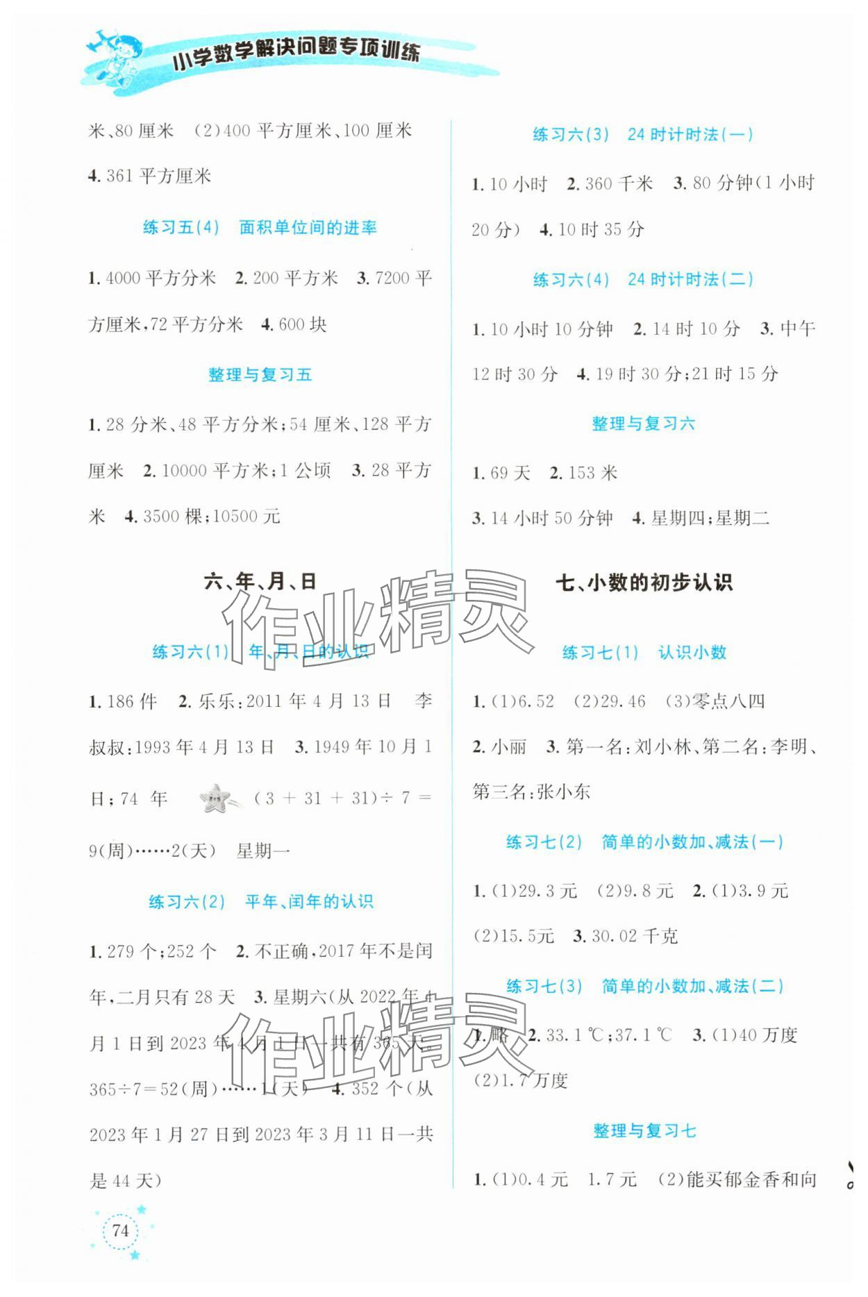 注:目前有些书本章节名称可能整理的还不是很完善,但都是按照顺序排列的,请同学们按照顺序仔细查找。练习册 2024年解决问题专项训练三年级数学下册人教版 答案主要是用来给同学们做完题方便对答案用的,请勿直接抄袭。