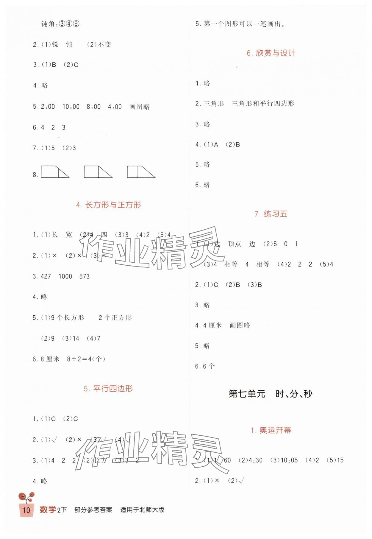 注:目前有些书本章节名称可能整理的还不是很完善,但都是按照顺序排列的,请同学们按照顺序仔细查找。练习册 2024年小学生学习实践园地二年级数学下册北师大版 答案主要是用来给同学们做完题方便对答案用的,请勿直接抄袭。