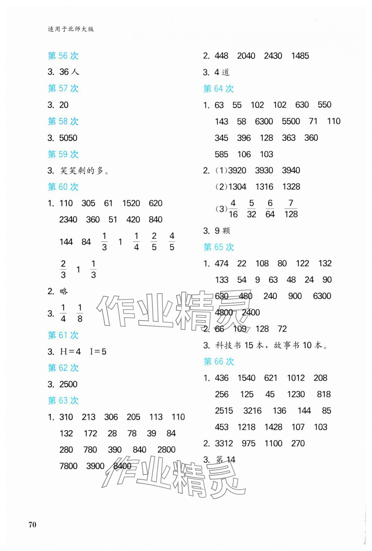 注:目前有些书本章节名称可能整理的还不是很完善,但都是按照顺序排列的,请同学们按照顺序仔细查找。练习册 2024年快速口算本三年级下册北师大版 答案主要是用来给同学们做完题方便对答案用的,请勿直接抄袭。