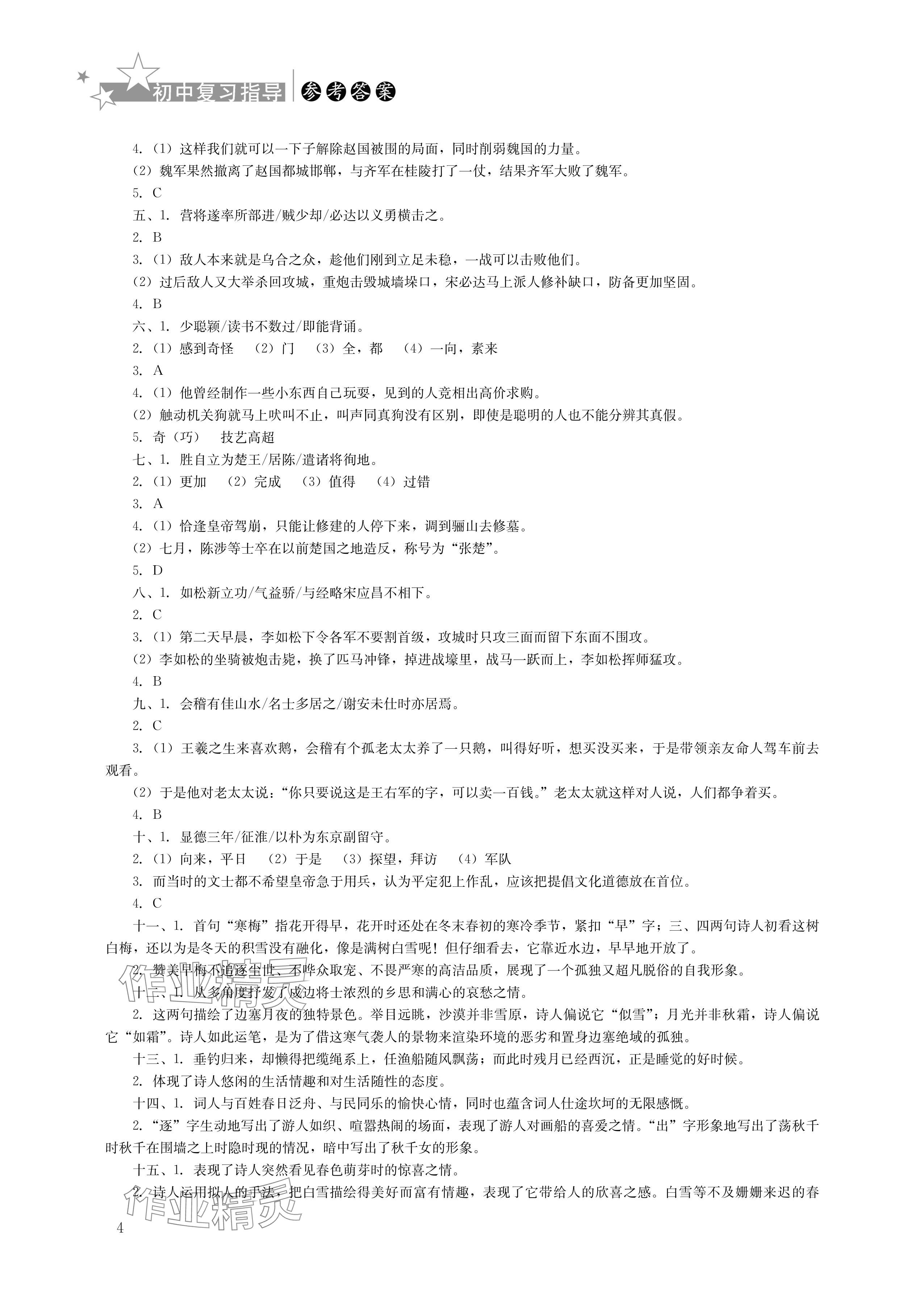 注:目前有些书本章节名称可能整理的还不是很完善,但都是按照顺序排列的,请同学们按照顺序仔细查找。练习册 2024年初中复习指导中考语文 答案主要是用来给同学们做完题方便对答案用的,请勿直接抄袭。