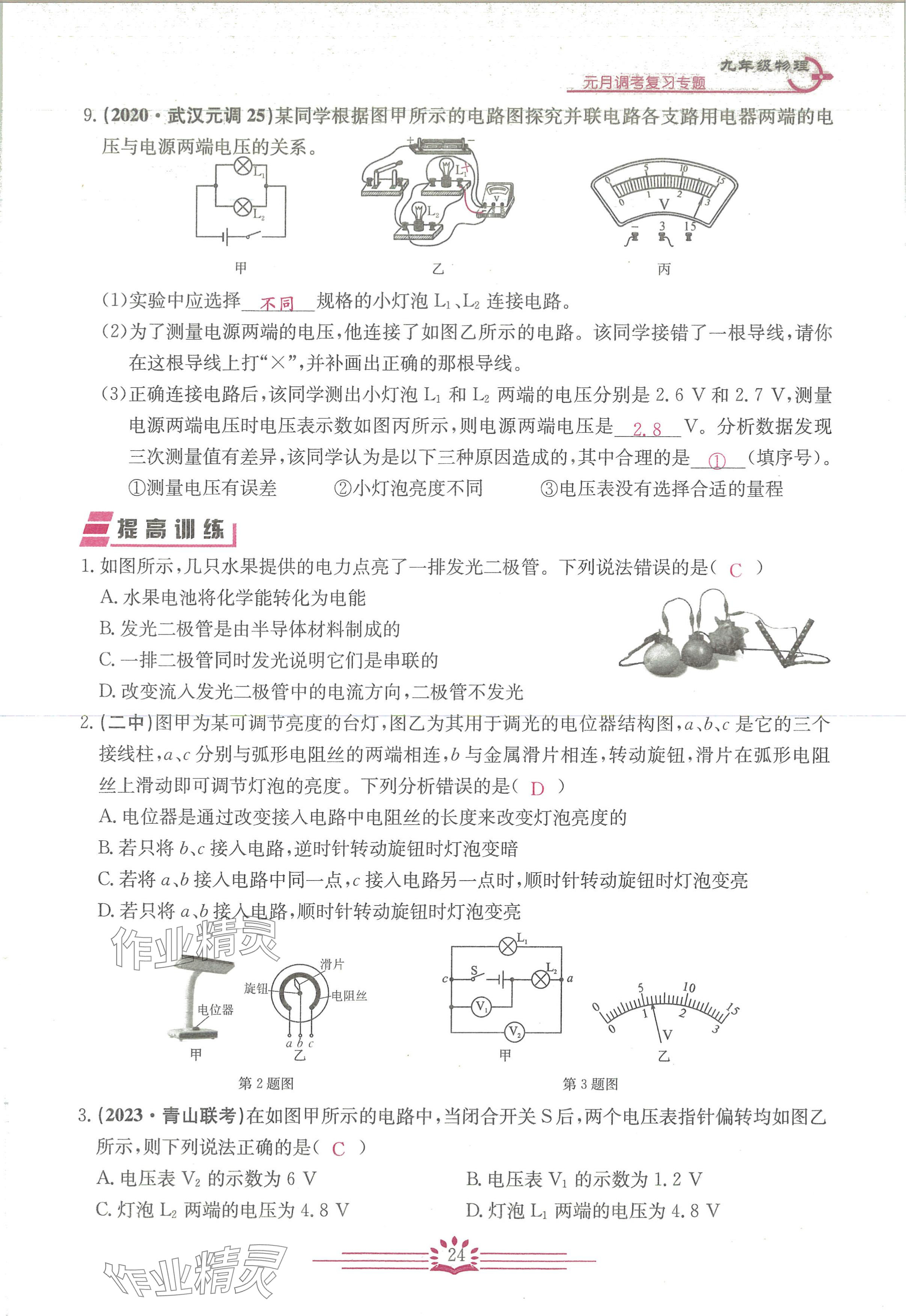 注:目前有些书本章节名称可能整理的还不是很完善,但都是按照顺序排列的,请同学们按照顺序仔细查找。练习册 2024年思维新观察元调专题复习九年级物理人教版 答案主要是用来给同学们做完题方便对答案用的,请勿直接抄袭。