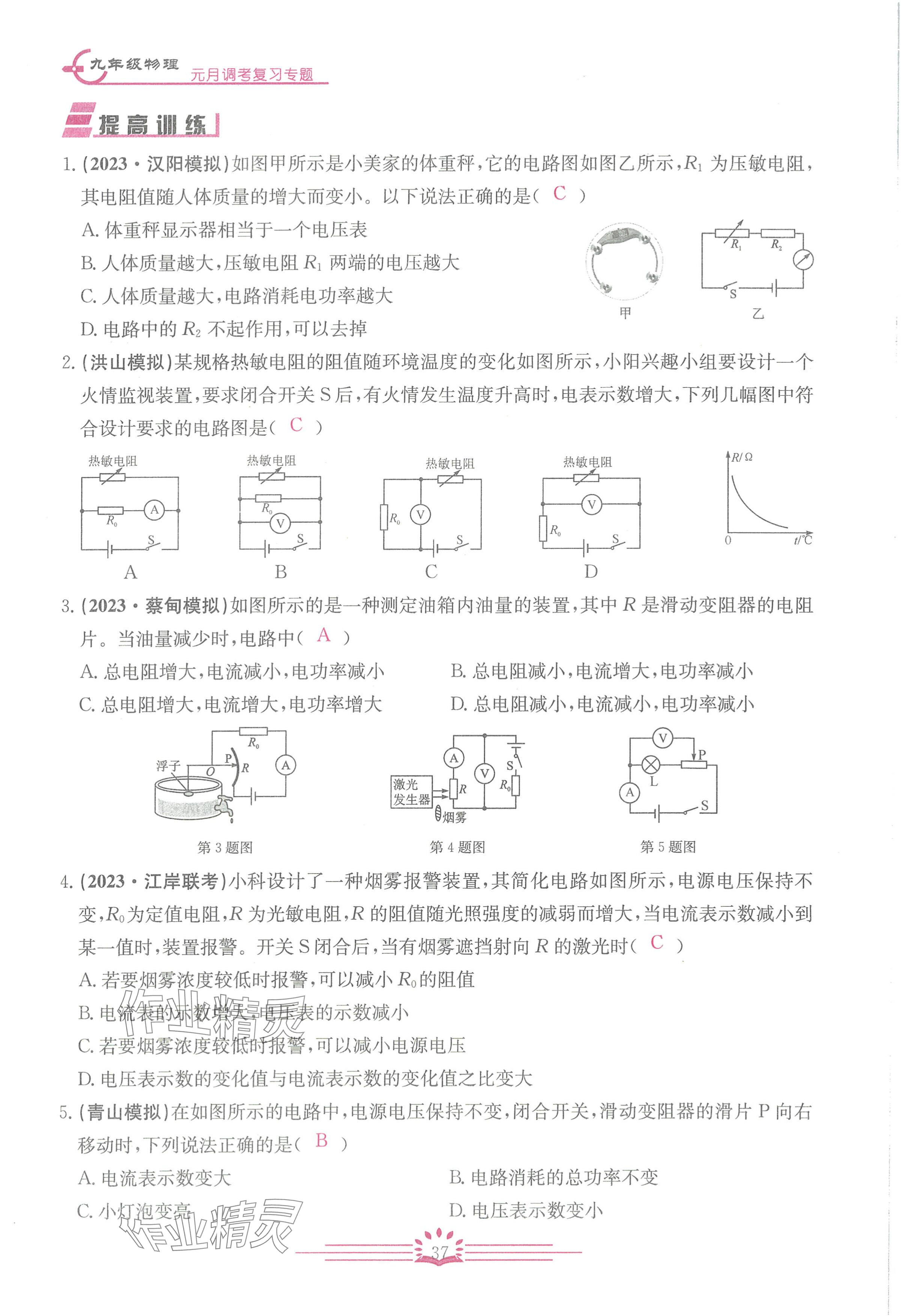 注:目前有些书本章节名称可能整理的还不是很完善,但都是按照顺序排列的,请同学们按照顺序仔细查找。练习册 2024年思维新观察元调专题复习九年级物理人教版 答案主要是用来给同学们做完题方便对答案用的,请勿直接抄袭。