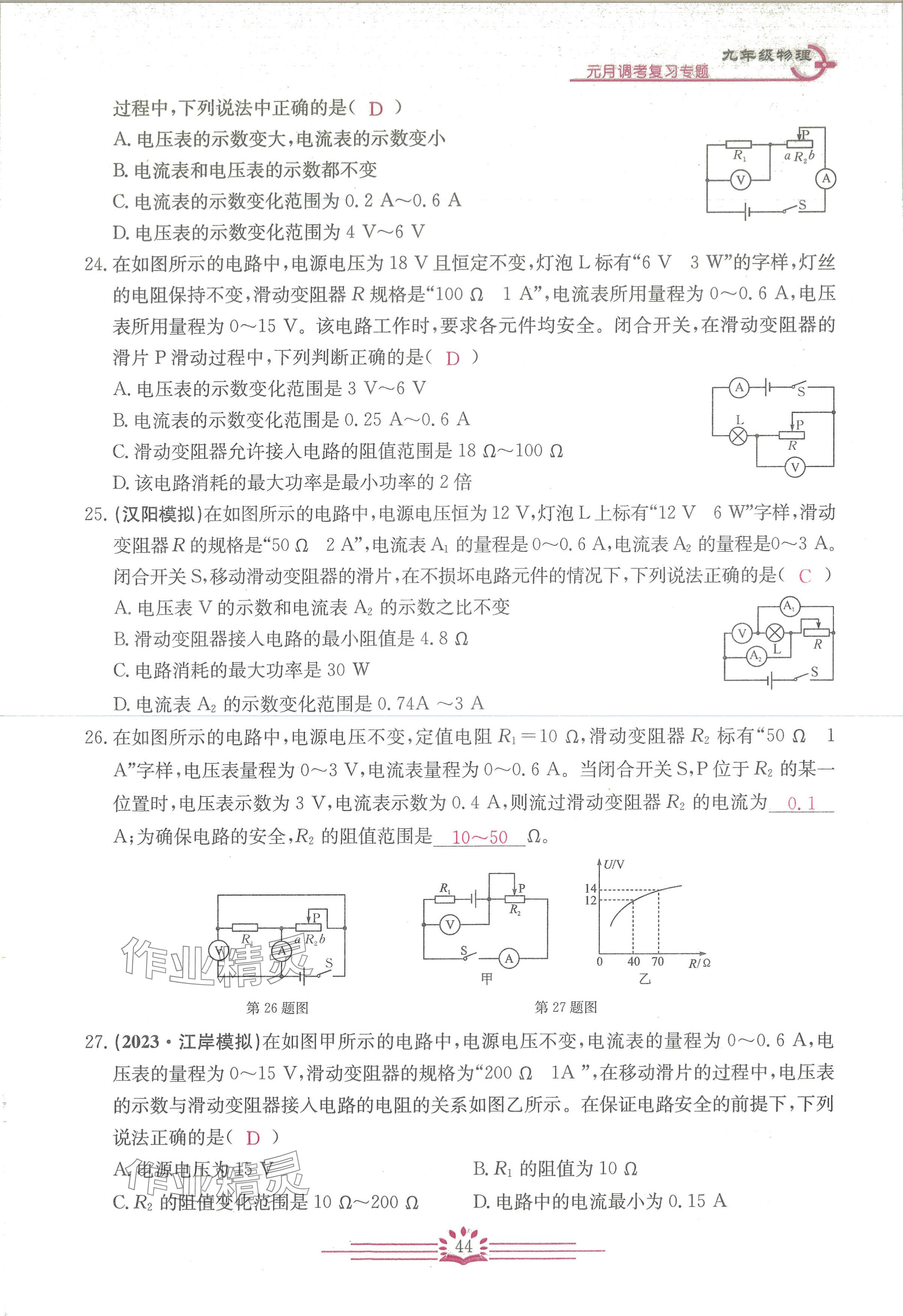 注:目前有些书本章节名称可能整理的还不是很完善,但都是按照顺序排列的,请同学们按照顺序仔细查找。练习册 2024年思维新观察元调专题复习九年级物理人教版 答案主要是用来给同学们做完题方便对答案用的,请勿直接抄袭。