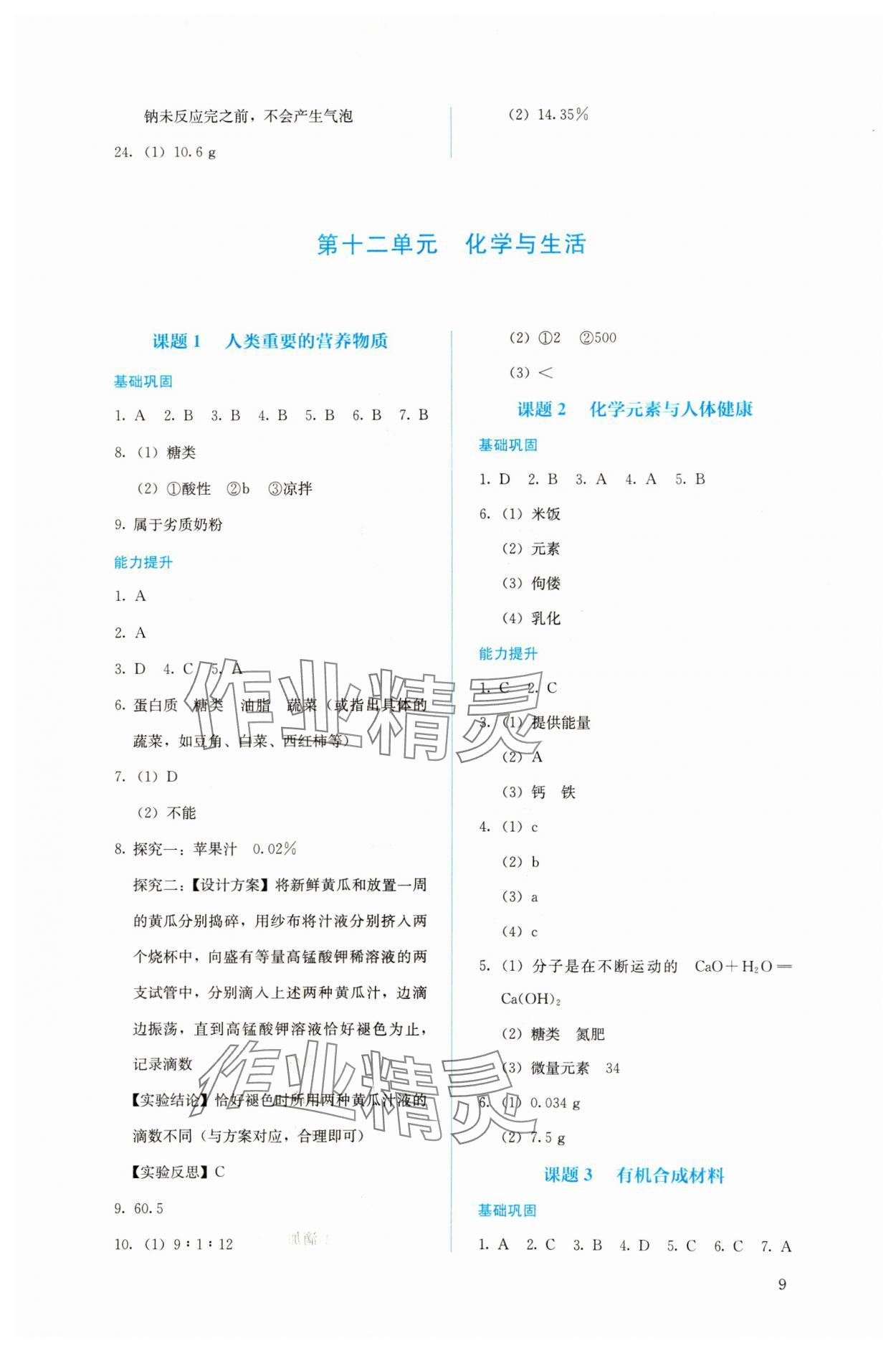 注:目前有些书本章节名称可能整理的还不是很完善,但都是按照顺序排列的,请同学们按照顺序仔细查找。练习册 2024年人教金学典同步解析与测评九年级化学下册人教版 答案主要是用来给同学们做完题方便对答案用的,请勿直接抄袭。