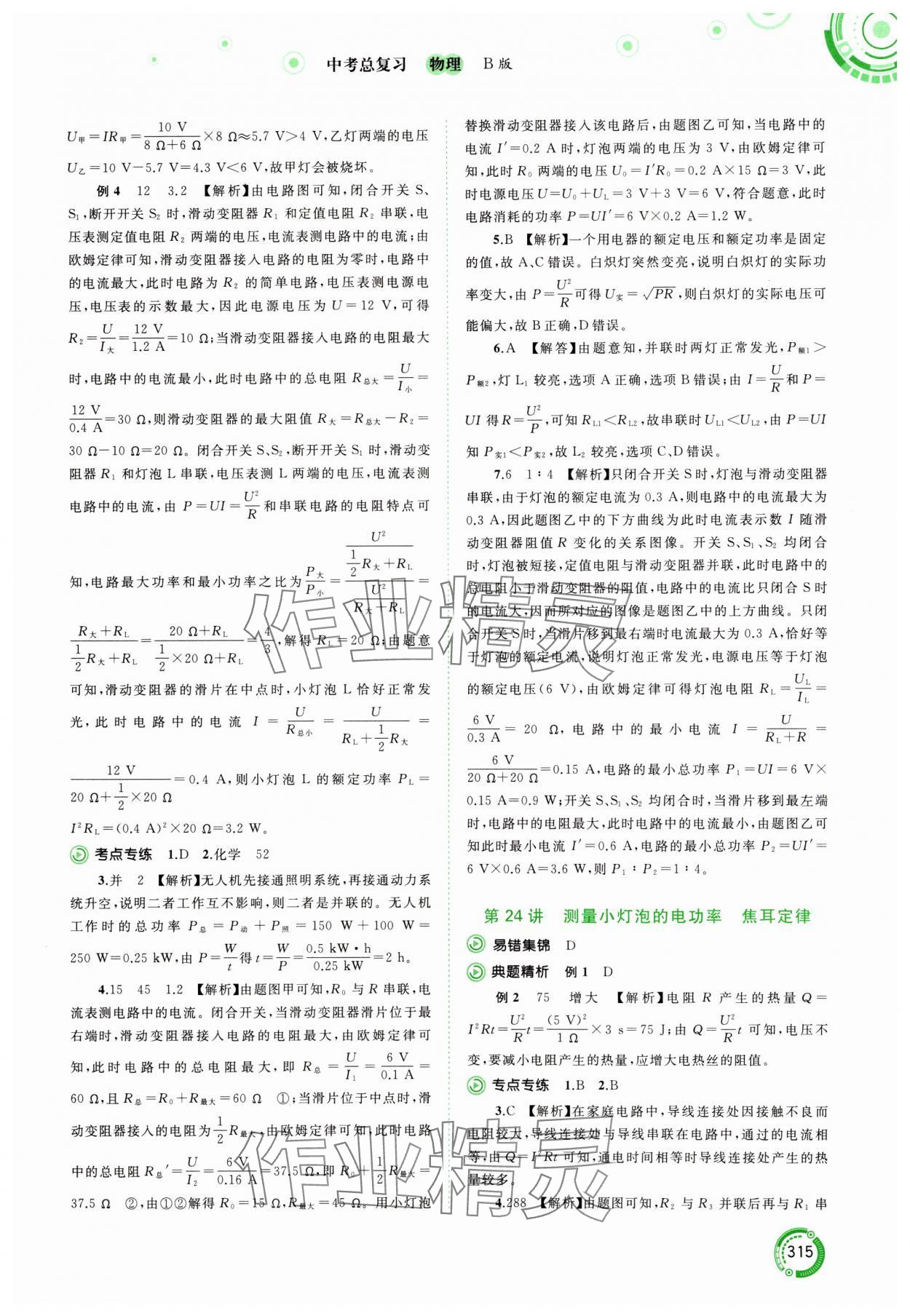 注:目前有些书本章节名称可能整理的还不是很完善,但都是按照顺序排列的,请同学们按照顺序仔细查找。练习册 2024年中考先锋中考总复习物理中考沪粤版 答案主要是用来给同学们做完题方便对答案用的,请勿直接抄袭。