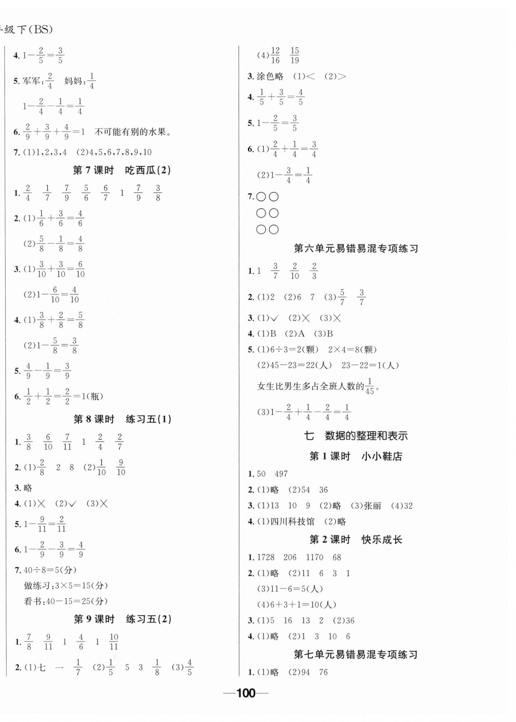 注:目前有些书本章节名称可能整理的还不是很完善,但都是按照顺序排列的,请同学们按照顺序仔细查找。练习册 2024年天府名校优课练三年级数学下册北师大版 答案主要是用来给同学们做完题方便对答案用的,请勿直接抄袭。