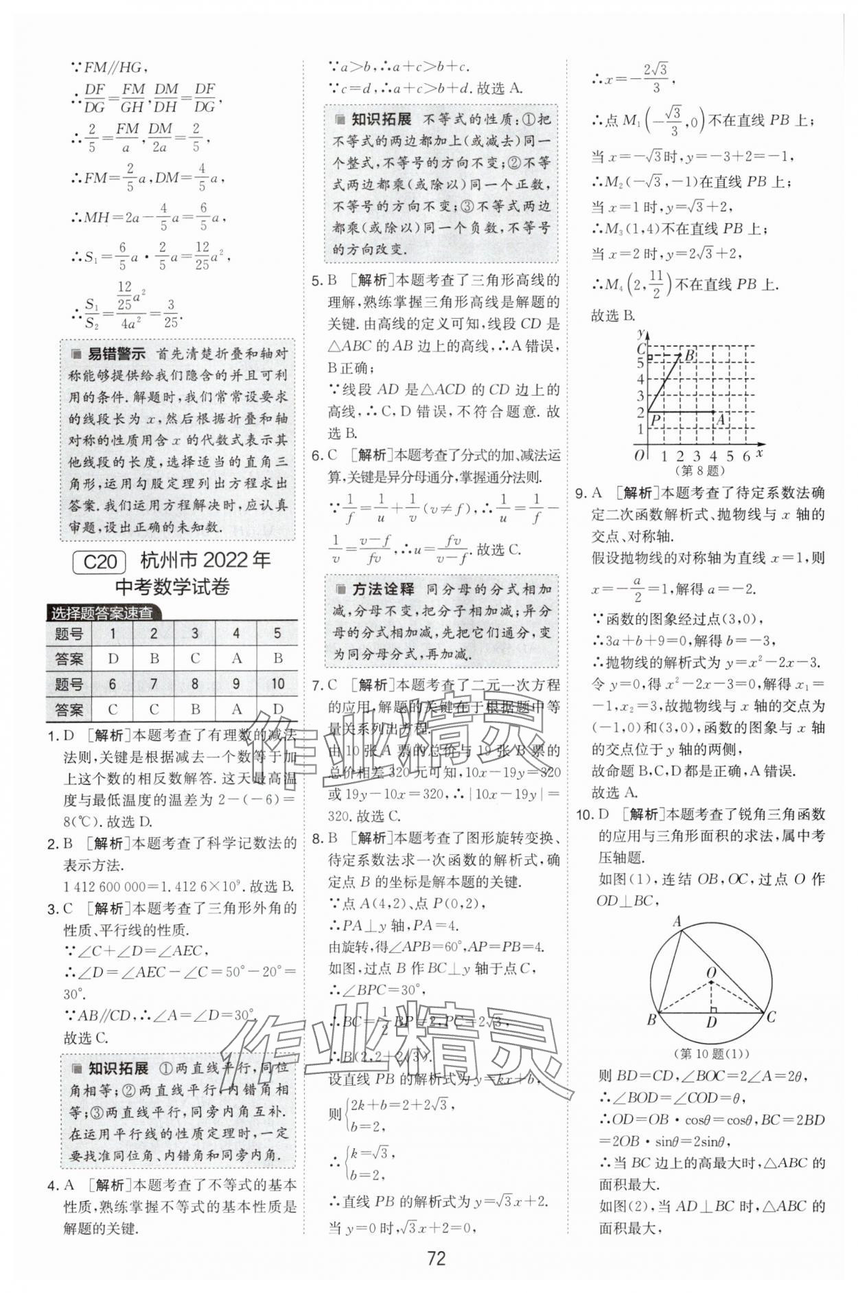 《2024年春雨教育考必胜中考试卷精选数学中考浙江专版》