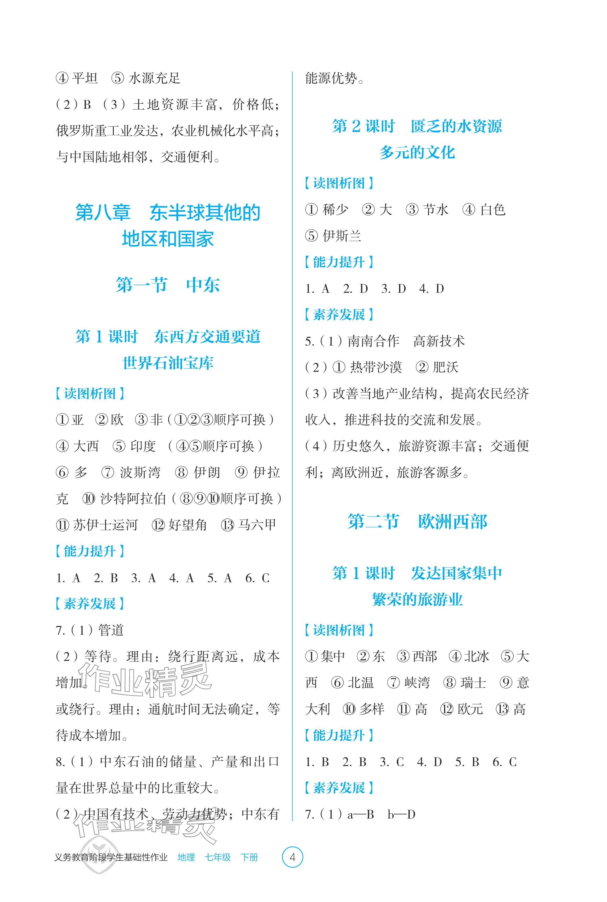 注:目前有些书本章节名称可能整理的还不是很完善,但都是按照顺序排列的,请同学们按照顺序仔细查找。练习册 2024年学生基础性作业七年级地理下册人教版 答案主要是用来给同学们做完题方便对答案用的,请勿直接抄袭。