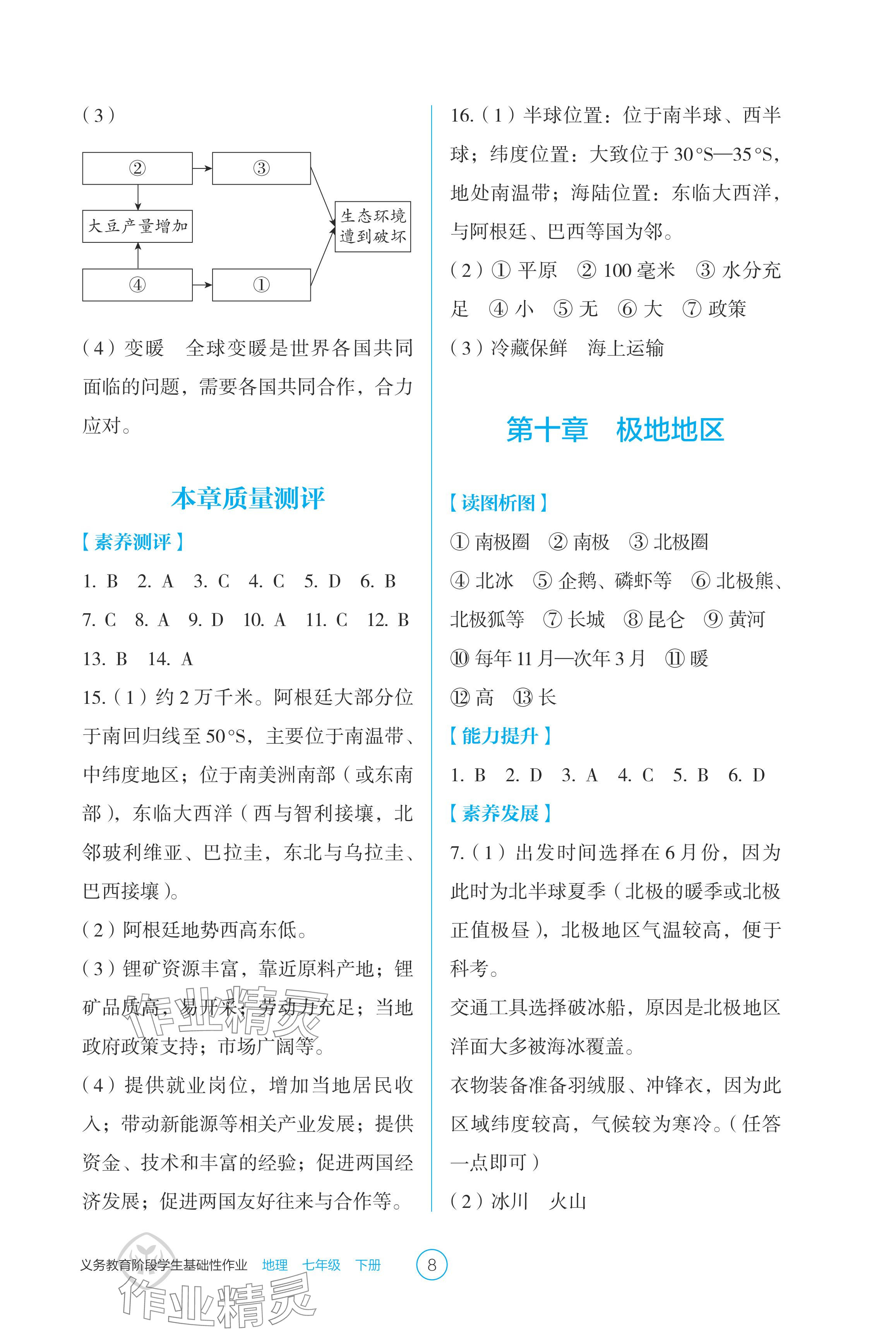注:目前有些书本章节名称可能整理的还不是很完善,但都是按照顺序排列的,请同学们按照顺序仔细查找。练习册 2024年学生基础性作业七年级地理下册人教版 答案主要是用来给同学们做完题方便对答案用的,请勿直接抄袭。