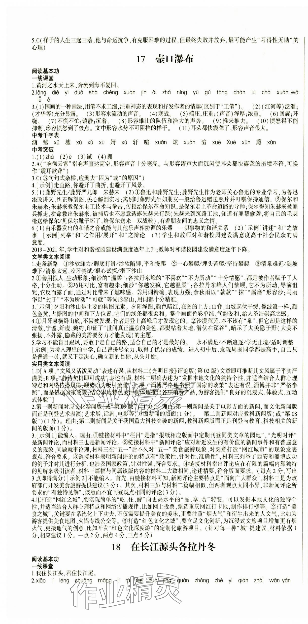 注:目前有些书本章节名称可能整理的还不是很完善,但都是按照顺序排列的,请同学们按照顺序仔细查找。练习册 2024年同步宝典1线超越八年级语文下册人教版 答案主要是用来给同学们做完题方便对答案用的,请勿直接抄袭。