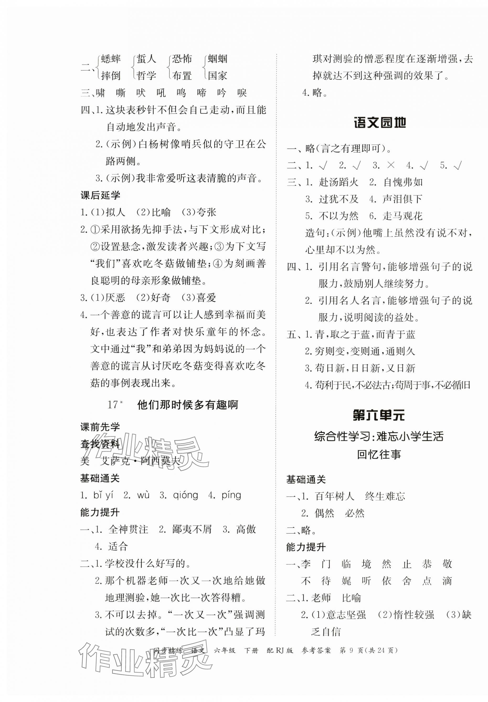 注:目前有些书本章节名称可能整理的还不是很完善,但都是按照顺序排列的,请同学们按照顺序仔细查找。练习册 2024年同步精练广东教育出版社六年级语文下册人教版 答案主要是用来给同学们做完题方便对答案用的,请勿直接抄袭。