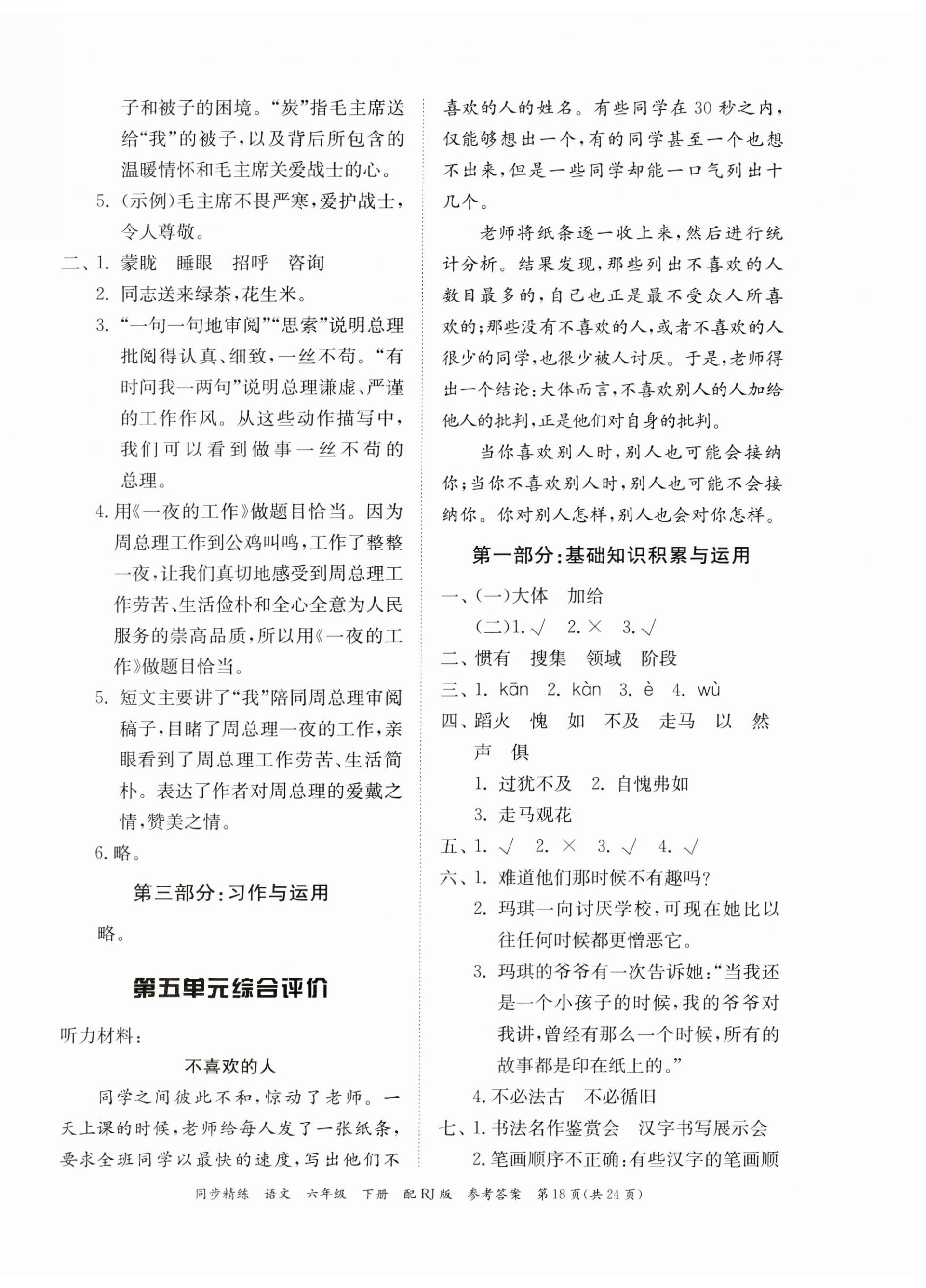 注:目前有些书本章节名称可能整理的还不是很完善,但都是按照顺序排列的,请同学们按照顺序仔细查找。练习册 2024年同步精练广东教育出版社六年级语文下册人教版 答案主要是用来给同学们做完题方便对答案用的,请勿直接抄袭。