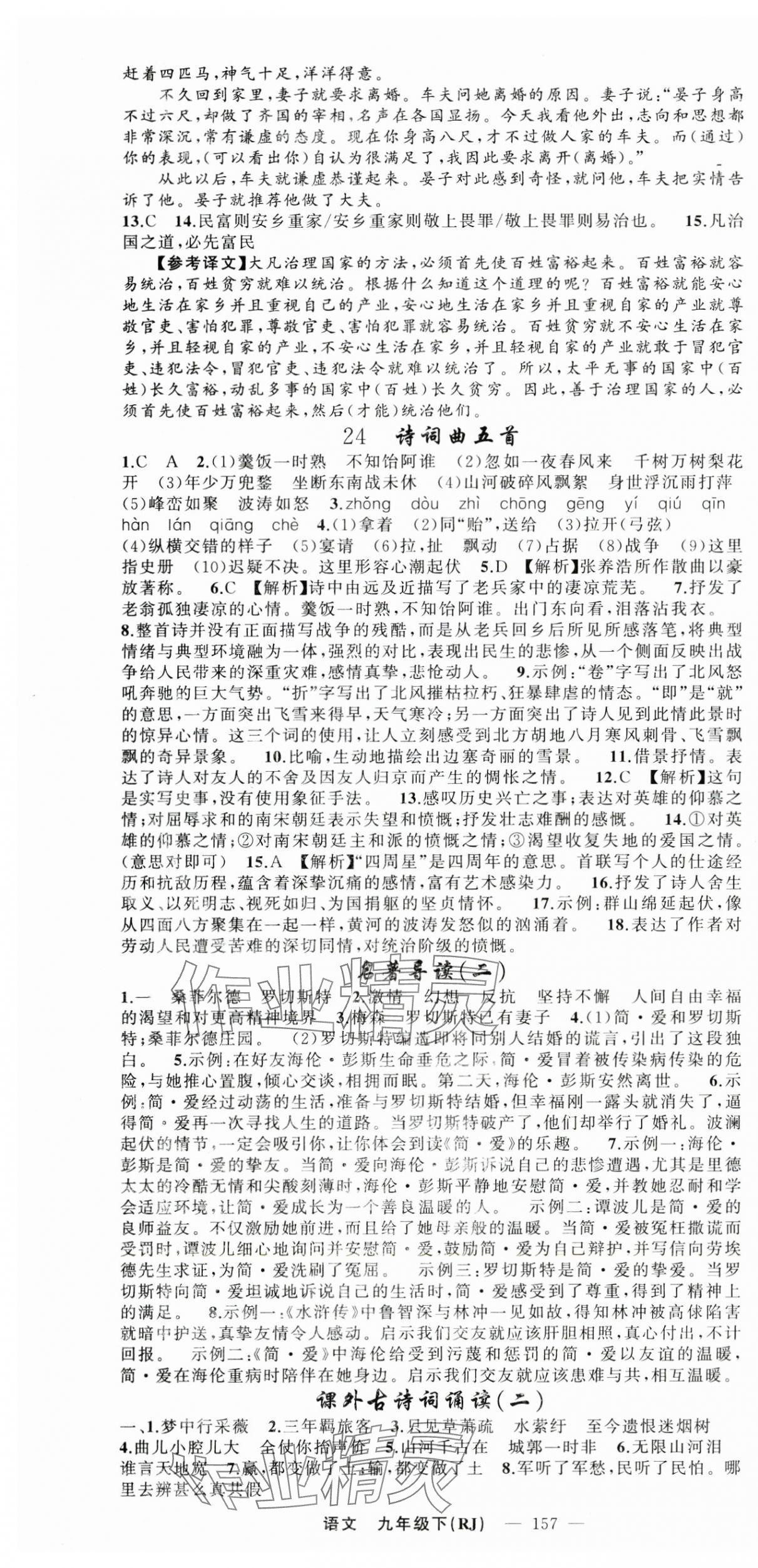 2024年黄冈金牌之路练闯考九年级语文下册人教版山西专版