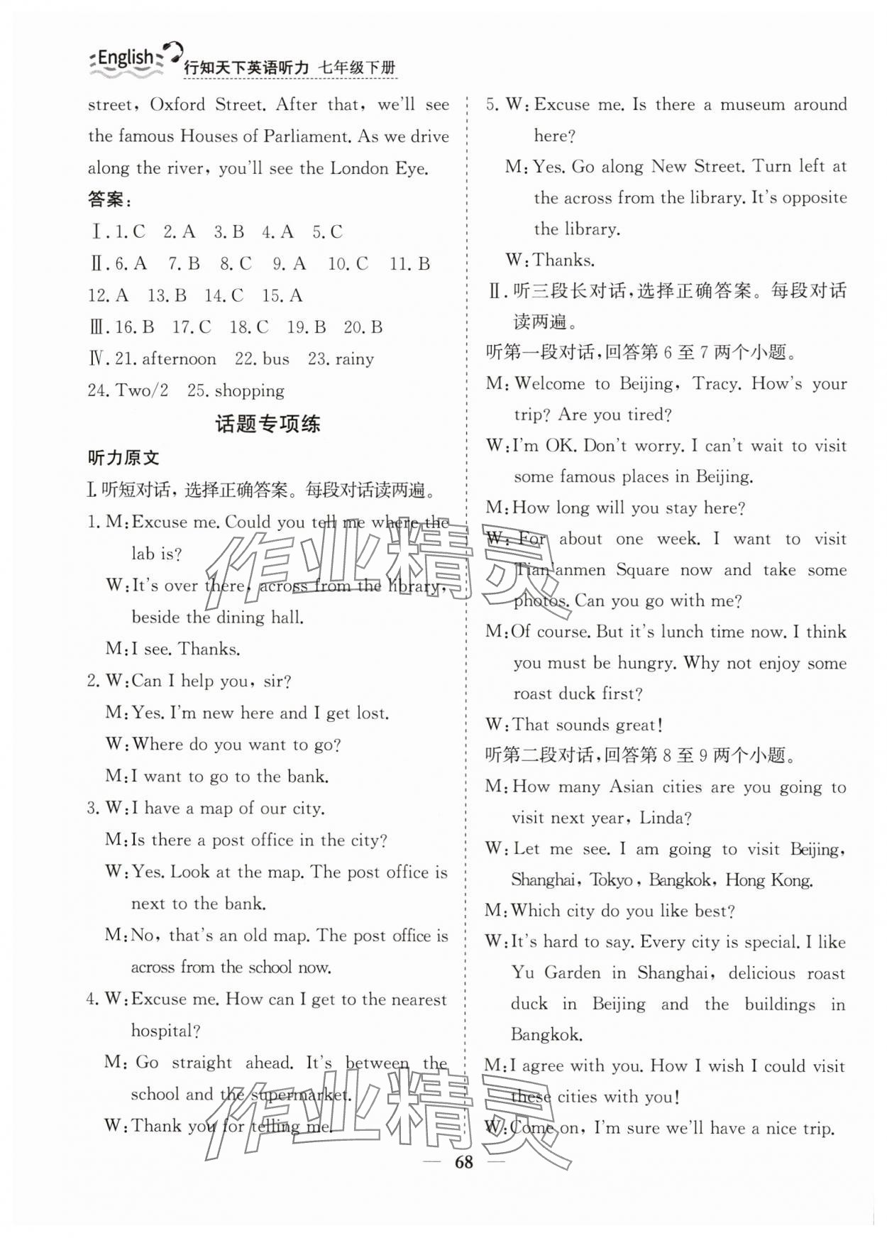 注:目前有些书本章节名称可能整理的还不是很完善,但都是按照顺序排列的,请同学们按照顺序仔细查找。练习册 2024年行知天下七年级英语听力下册 答案主要是用来给同学们做完题方便对答案用的,请勿直接抄袭。