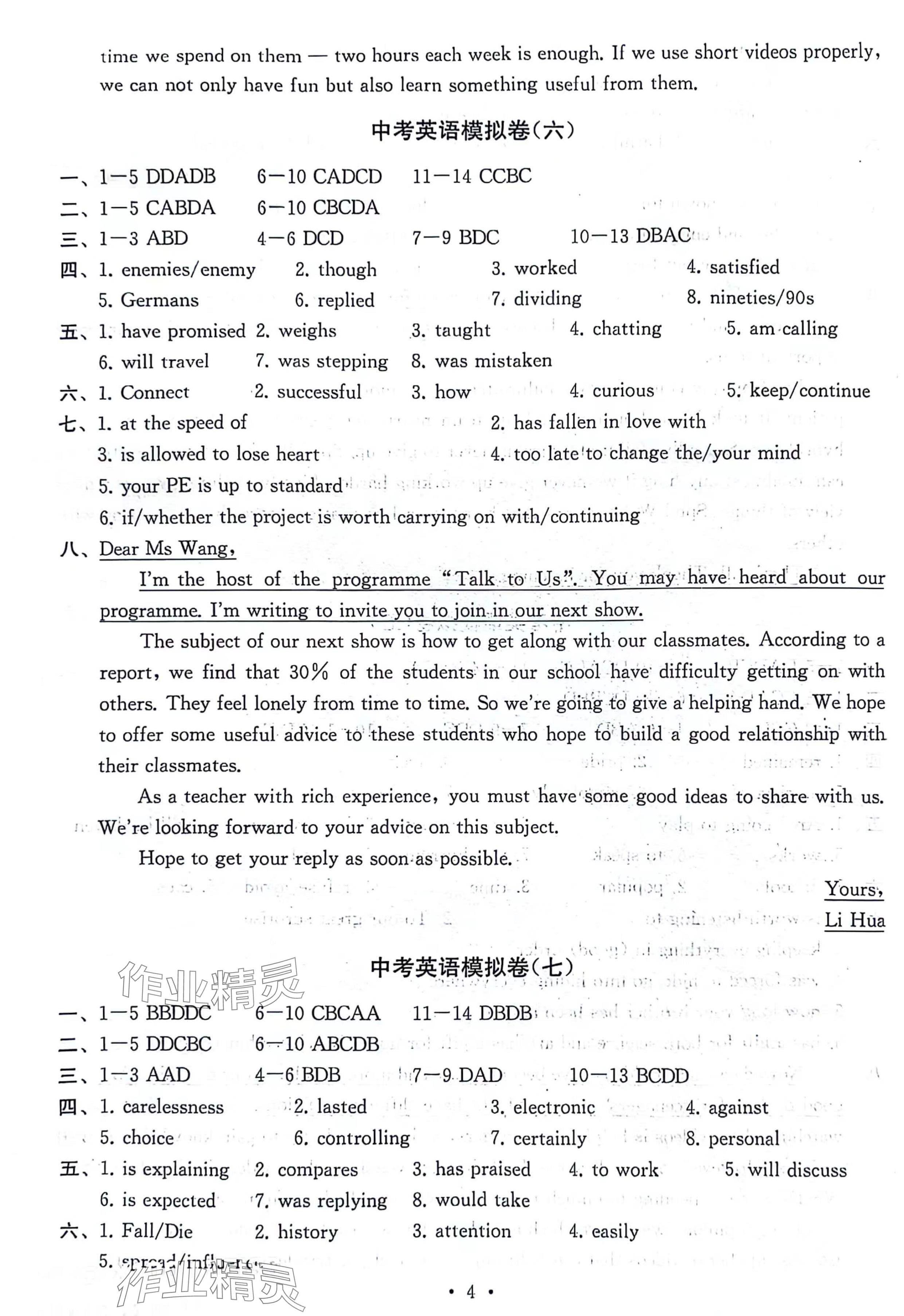 注:目前有些书本章节名称可能整理的还不是很完善,但都是按照顺序排列的,请同学们按照顺序仔细查找。练习册 2024年中考英语模拟卷无锡专版 答案主要是用来给同学们做完题方便对答案用的,请勿直接抄袭。