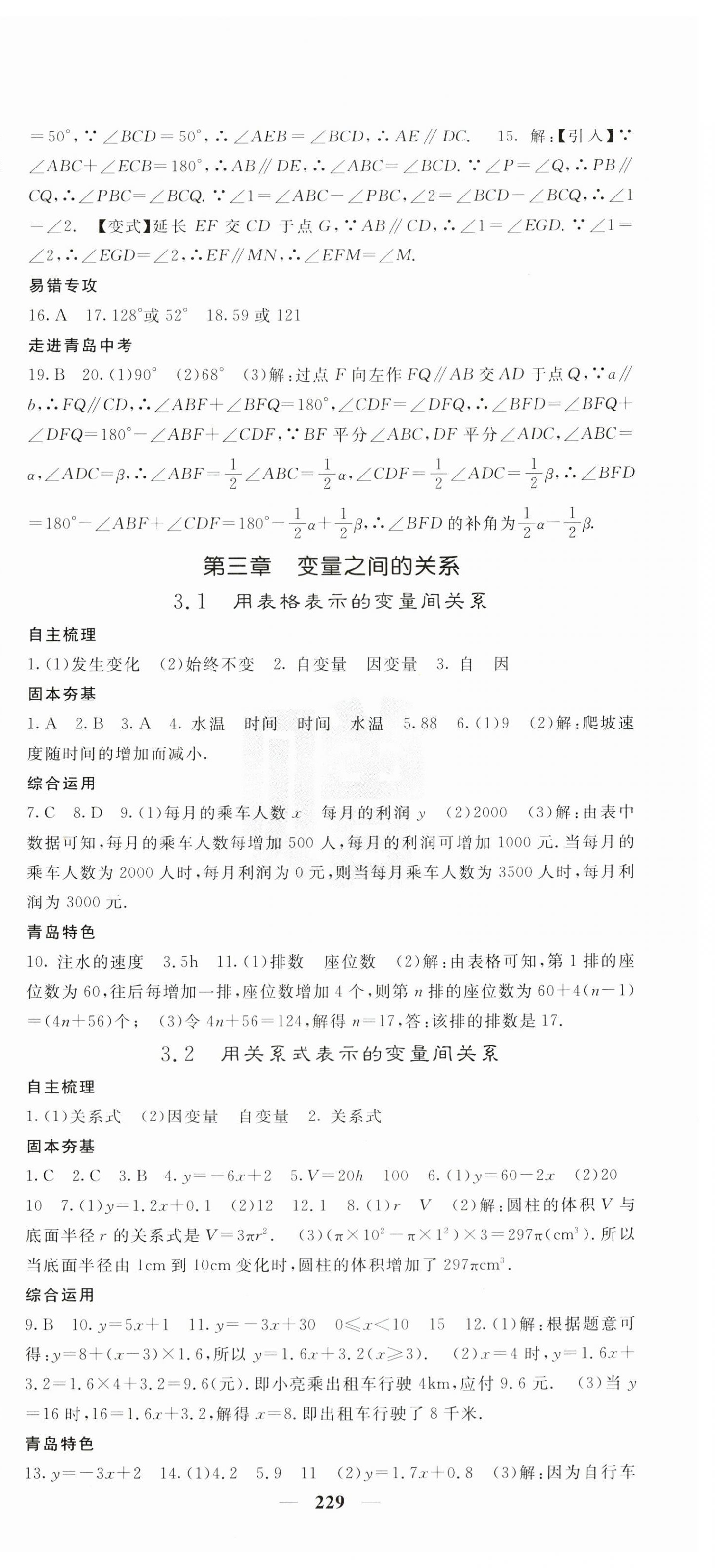 2024年名校课堂内外七年级数学下册北师大版青岛专版