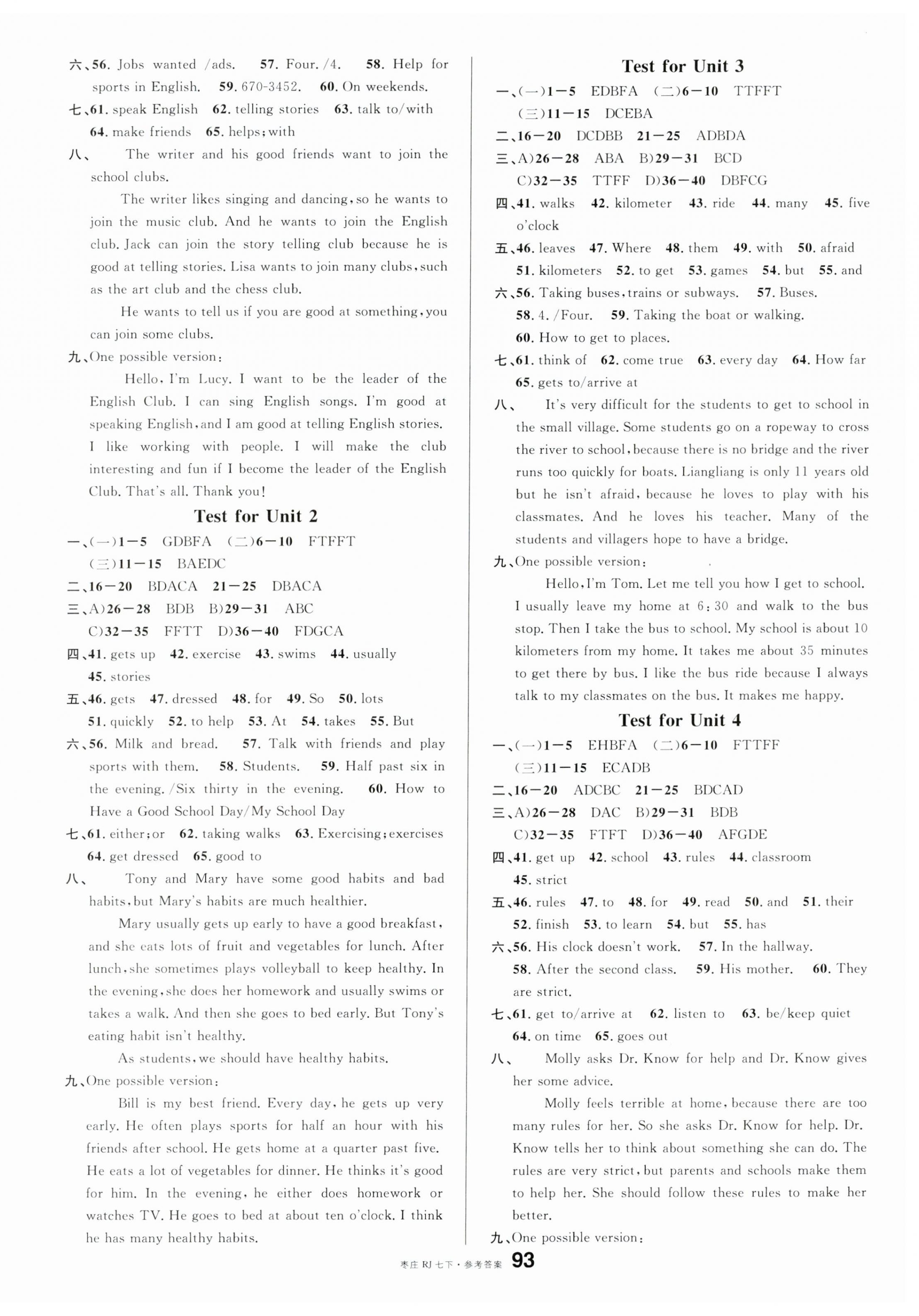 注:目前有些书本章节名称可能整理的还不是很完善,但都是按照顺序排列的,请同学们按照顺序仔细查找。练习册 2024年名校课堂七年级英语下册人教版枣庄专版 答案主要是用来给同学们做完题方便对答案用的,请勿直接抄袭。