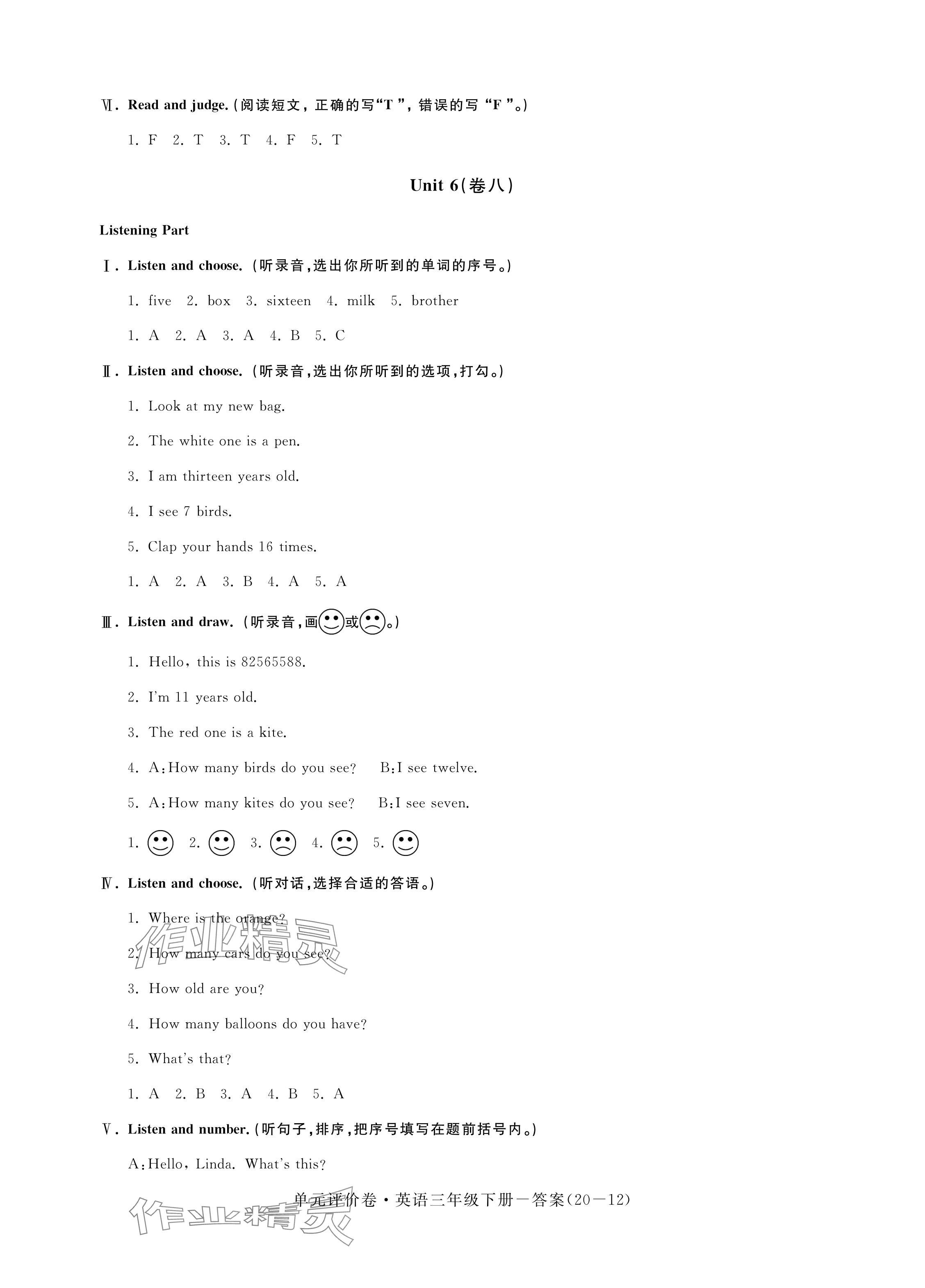 注:目前有些书本章节名称可能整理的还不是很完善,但都是按照顺序排列的,请同学们按照顺序仔细查找。练习册 2024年单元评价卷宁波出版社三年级英语下册人教版 答案主要是用来给同学们做完题方便对答案用的,请勿直接抄袭。