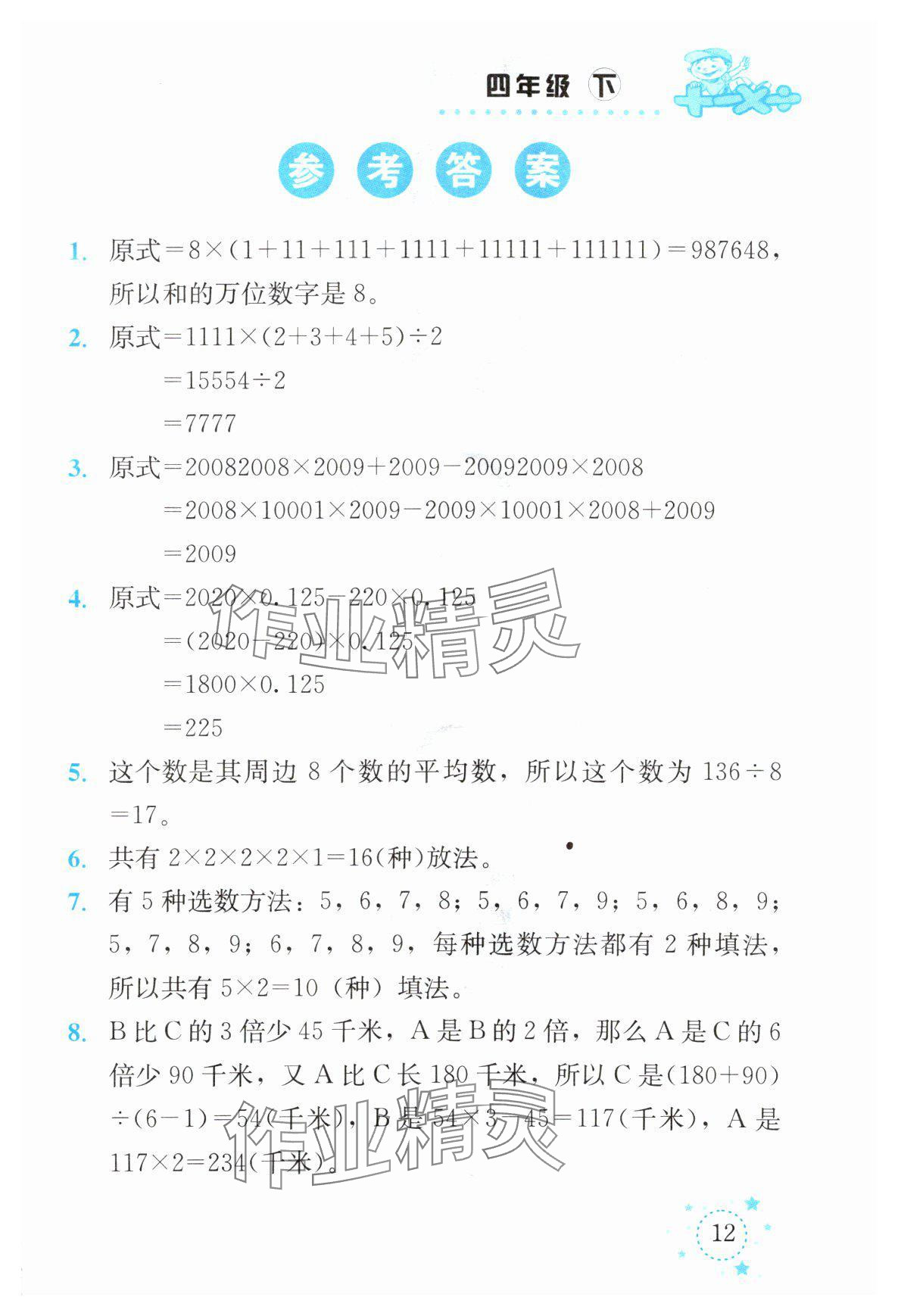 注:目前有些书本章节名称可能整理的还不是很完善,但都是按照顺序排列的,请同学们按照顺序仔细查找。练习册 2024年解决问题专项训练四年级数学下册西师大版 答案主要是用来给同学们做完题方便对答案用的,请勿直接抄袭。