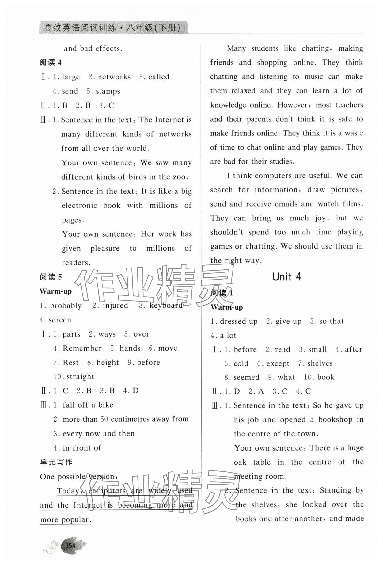 注:目前有些书本章节名称可能整理的还不是很完善,但都是按照顺序排列的,请同学们按照顺序仔细查找。练习册 2024年高效英语阅读训练八年级下册译林版 答案主要是用来给同学们做完题方便对答案用的,请勿直接抄袭。