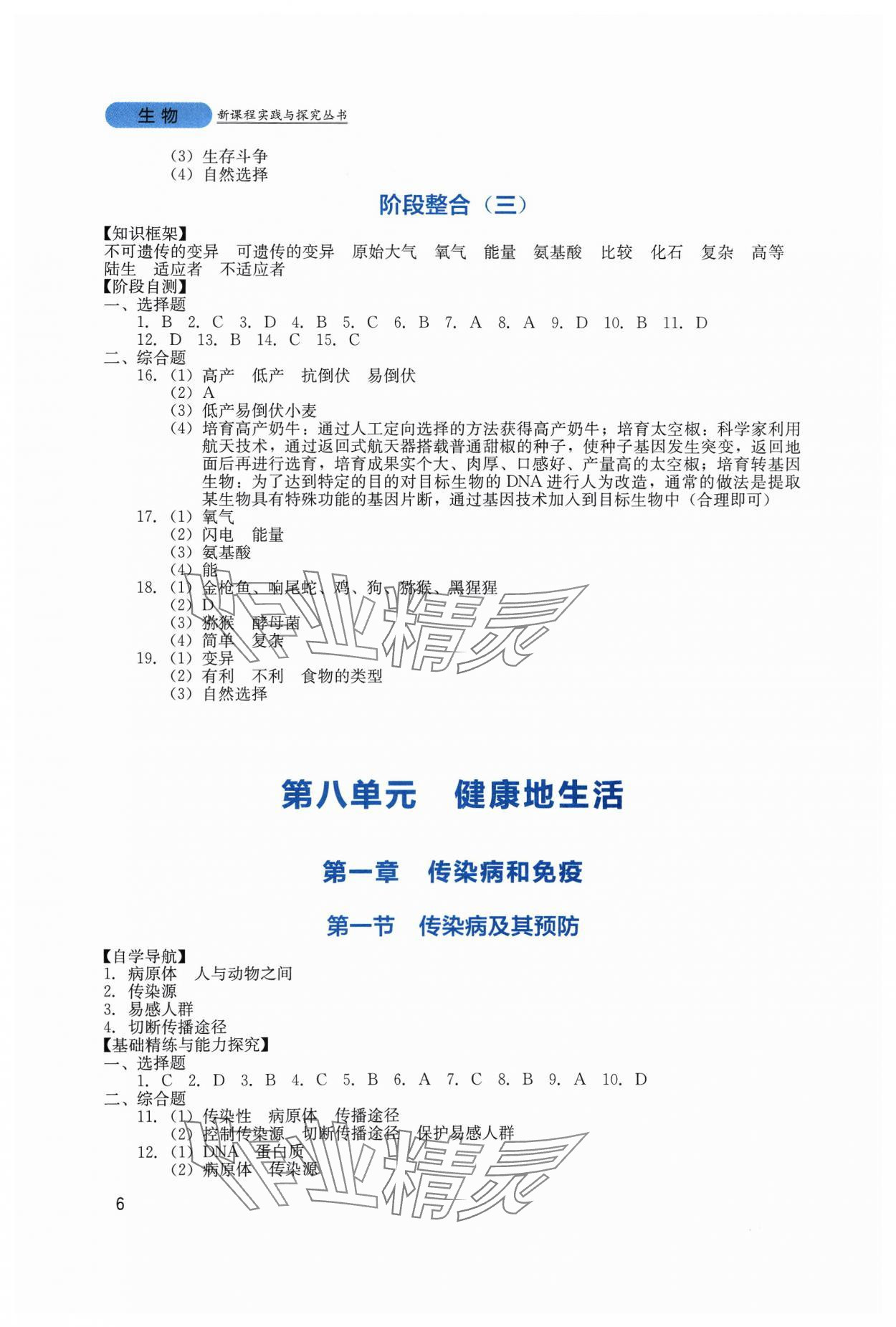 注:目前有些书本章节名称可能整理的还不是很完善,但都是按照顺序排列的,请同学们按照顺序仔细查找。练习册 2024年新课程实践与探究丛书八年级生物下册人教版 答案主要是用来给同学们做完题方便对答案用的,请勿直接抄袭。