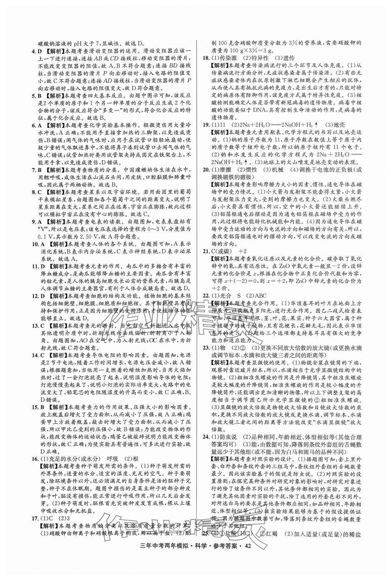 注:目前有些书本章节名称可能整理的还不是很完善,但都是按照顺序排列的,请同学们按照顺序仔细查找。练习册 2024年3年中考2年模拟科学中考浙江专版 答案主要是用来给同学们做完题方便对答案用的,请勿直接抄袭。