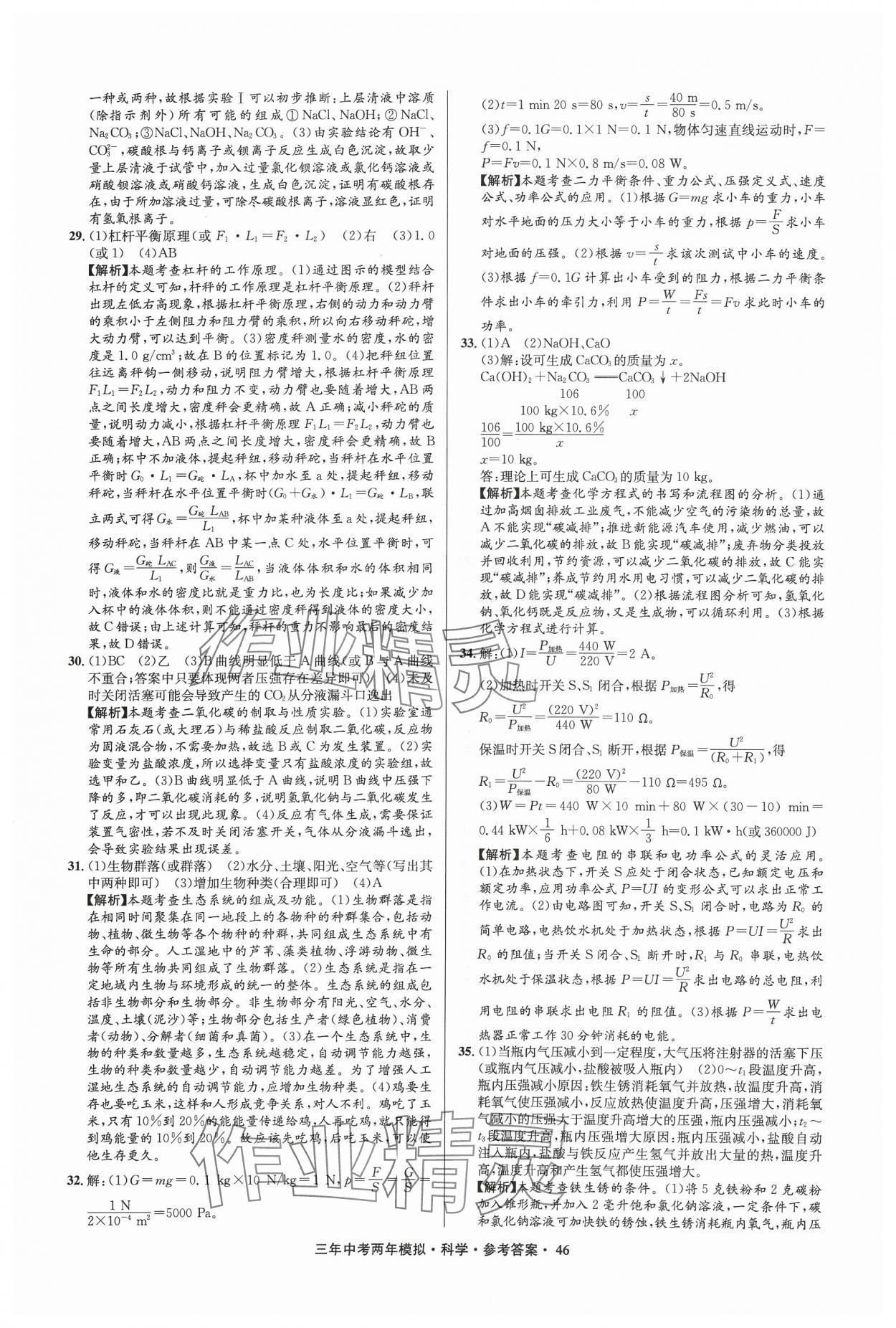 2024年3年中考2年模拟科学中考浙江专版