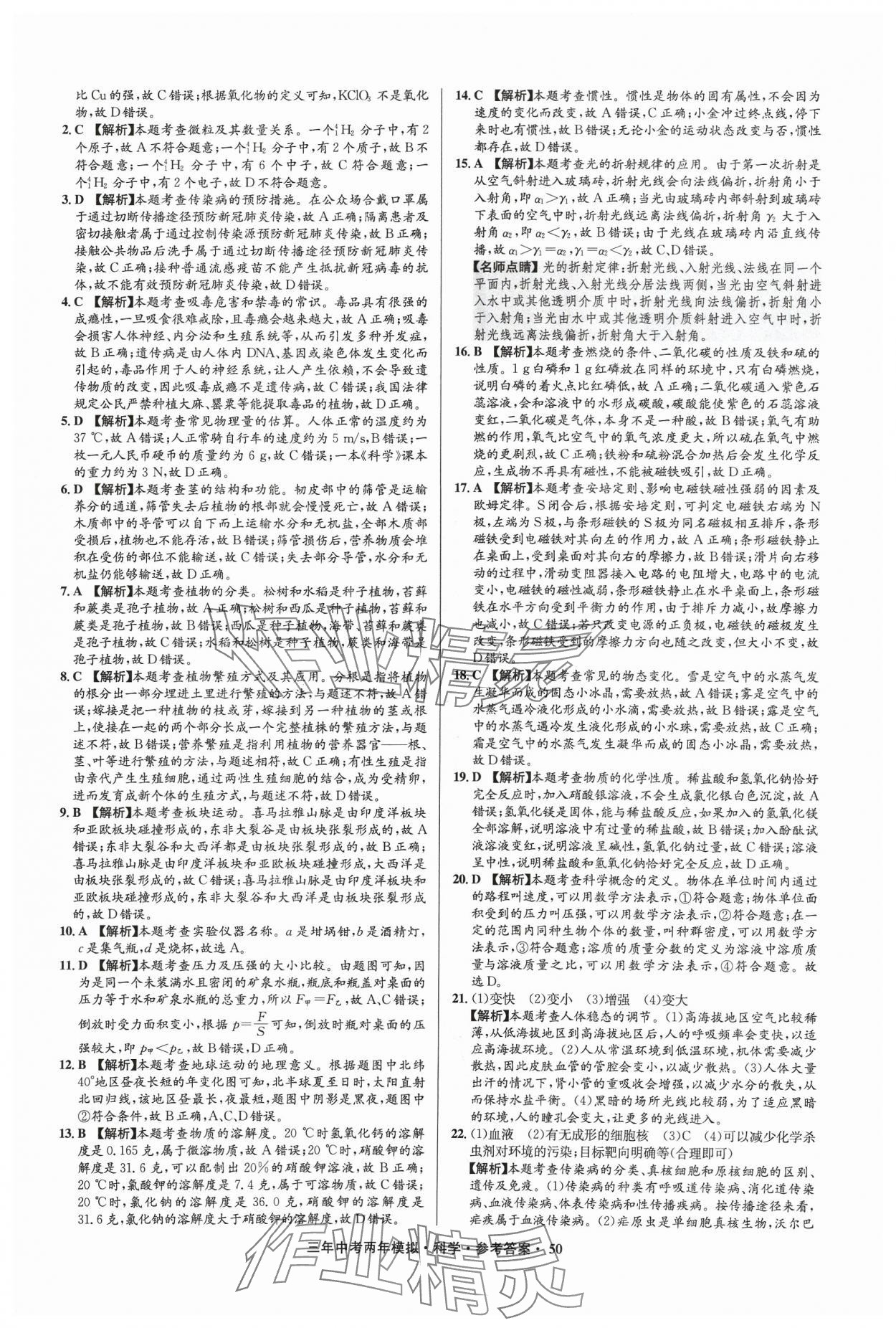 注:目前有些书本章节名称可能整理的还不是很完善,但都是按照顺序排列的,请同学们按照顺序仔细查找。练习册 2024年3年中考2年模拟科学中考浙江专版 答案主要是用来给同学们做完题方便对答案用的,请勿直接抄袭。