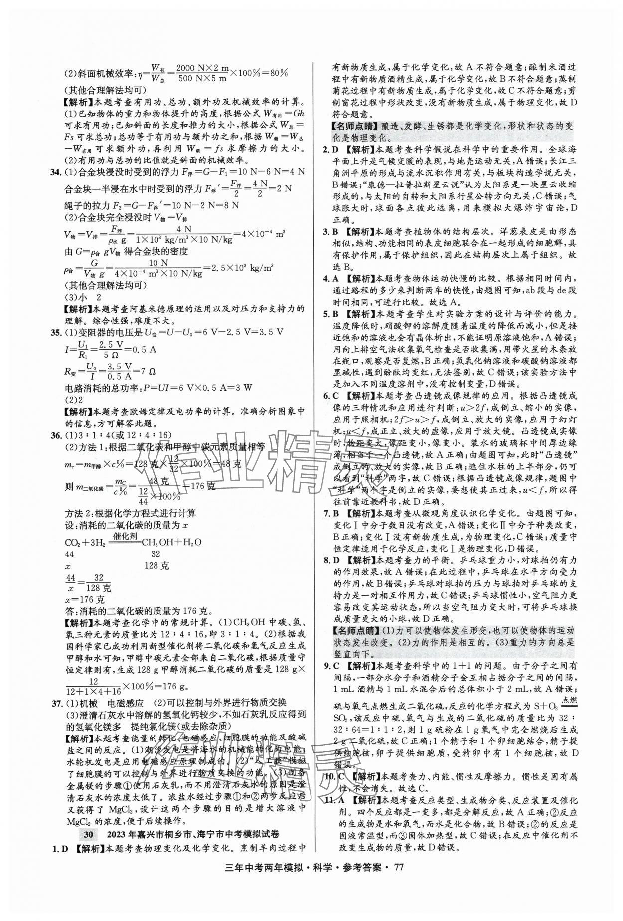注:目前有些书本章节名称可能整理的还不是很完善,但都是按照顺序排列的,请同学们按照顺序仔细查找。练习册 2024年3年中考2年模拟科学中考浙江专版 答案主要是用来给同学们做完题方便对答案用的,请勿直接抄袭。