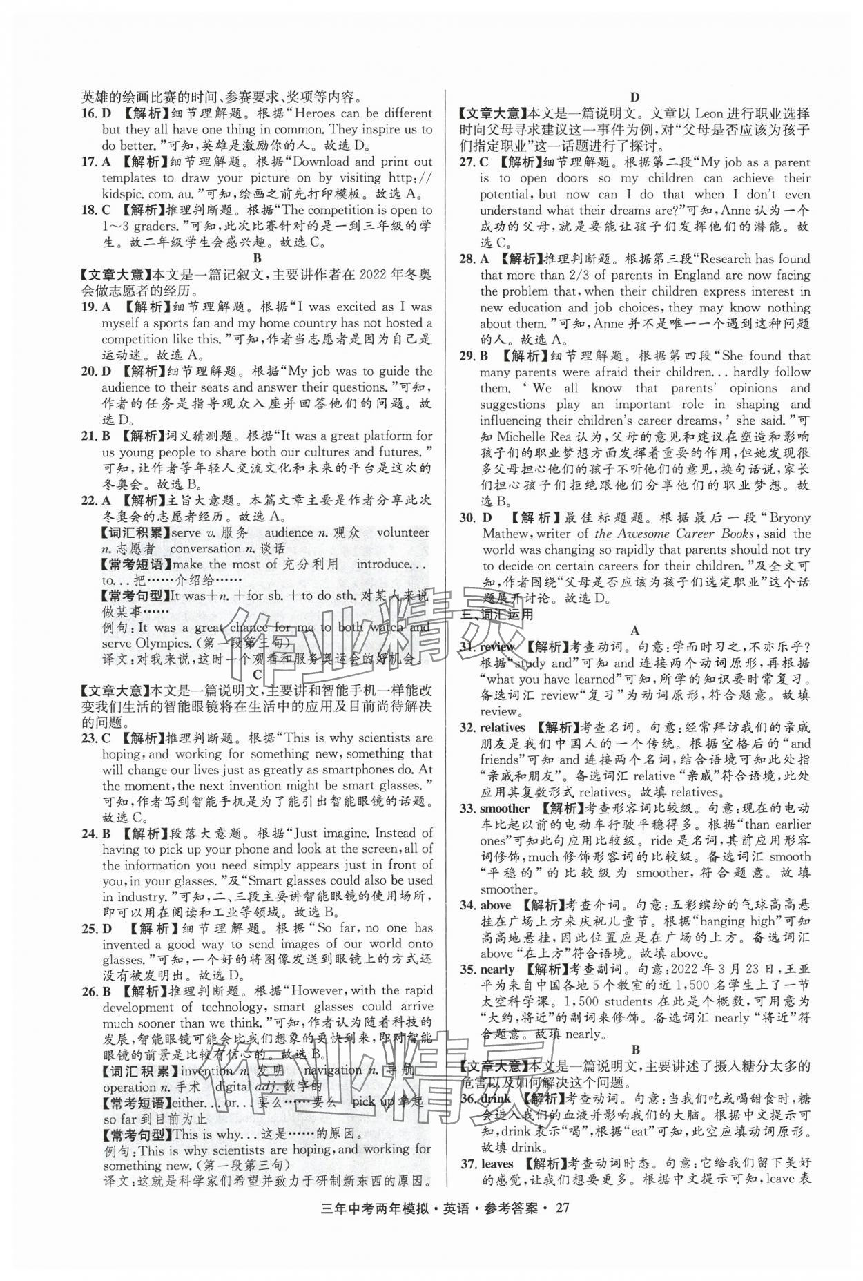 注:目前有些书本章节名称可能整理的还不是很完善,但都是按照顺序排列的,请同学们按照顺序仔细查找。练习册 2024年3年中考2年模拟英语中考浙江专版 答案主要是用来给同学们做完题方便对答案用的,请勿直接抄袭。
