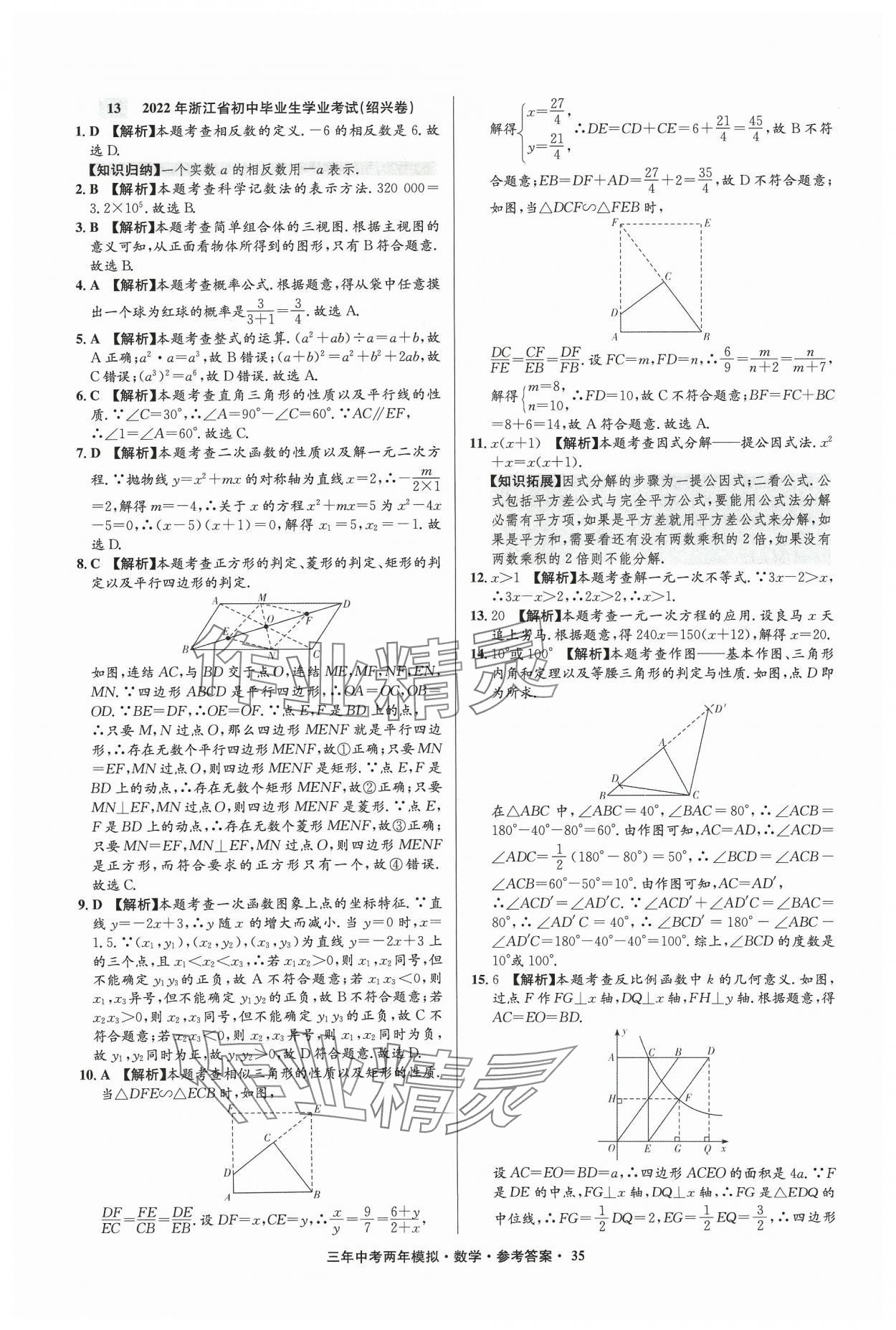 注:目前有些书本章节名称可能整理的还不是很完善,但都是按照顺序排列的,请同学们按照顺序仔细查找。练习册 2024年3年中考2年模拟数学中考浙江专版 答案主要是用来给同学们做完题方便对答案用的,请勿直接抄袭。
