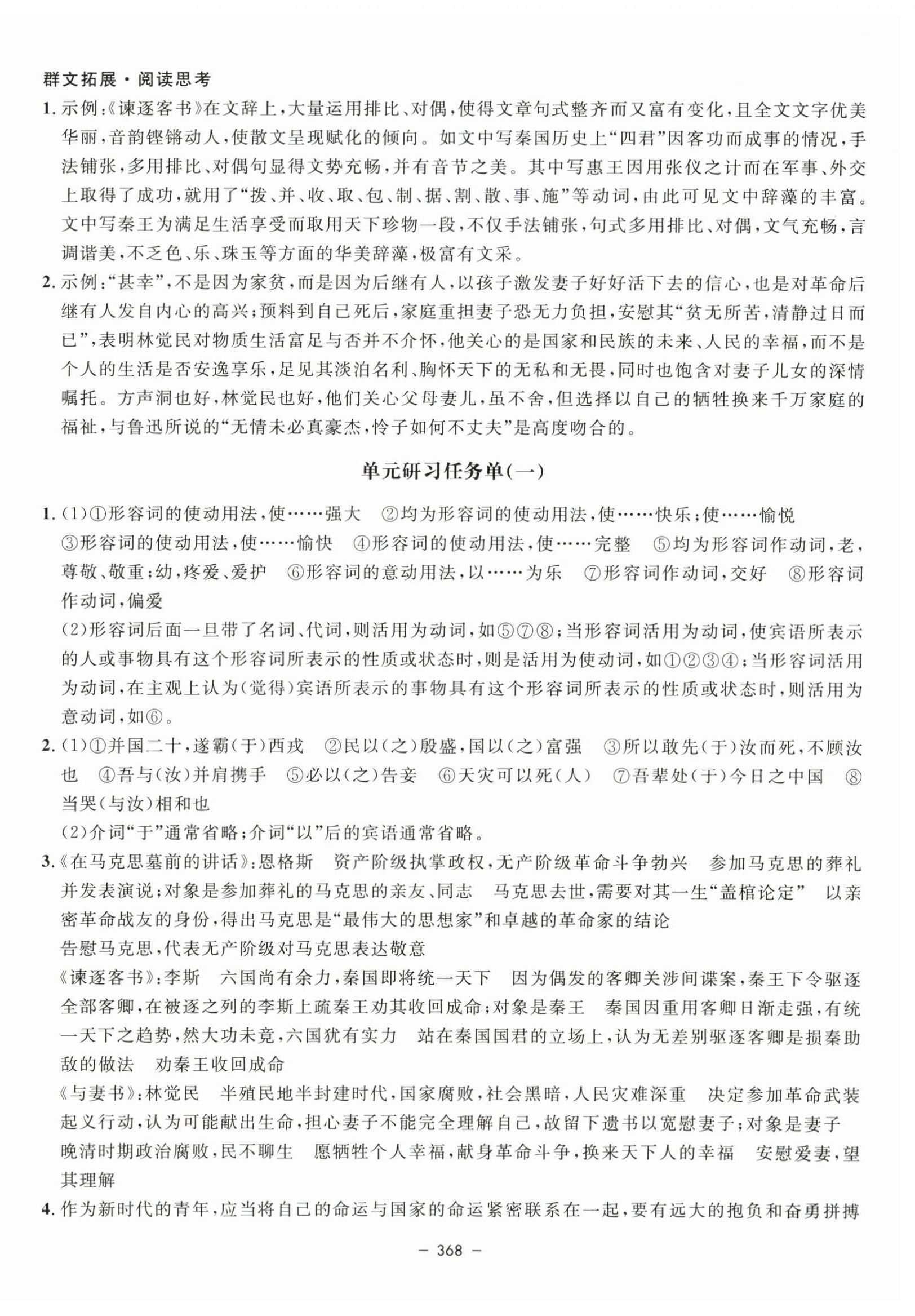 注:目前有些书本章节名称可能整理的还不是很完善,但都是按照顺序排列的,请同学们按照顺序仔细查找。练习册 2024年钟书金牌金典导学案高中语文必修下册人教版 答案主要是用来给同学们做完题方便对答案用的,请勿直接抄袭。