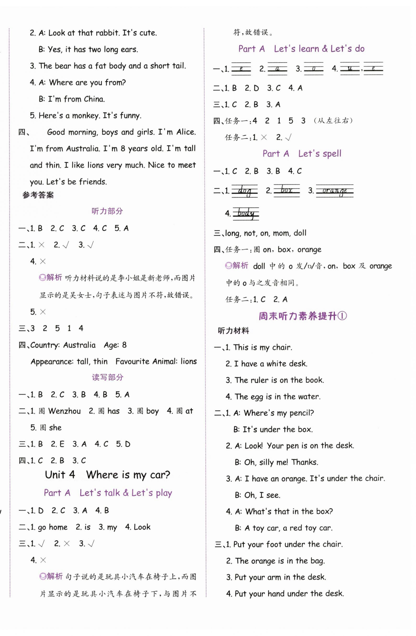 注:目前有些书本章节名称可能整理的还不是很完善,但都是按照顺序排列的,请同学们按照顺序仔细查找。练习册 2024年奔跑吧少年三年级英语下册人教版 答案主要是用来给同学们做完题方便对答案用的,请勿直接抄袭。