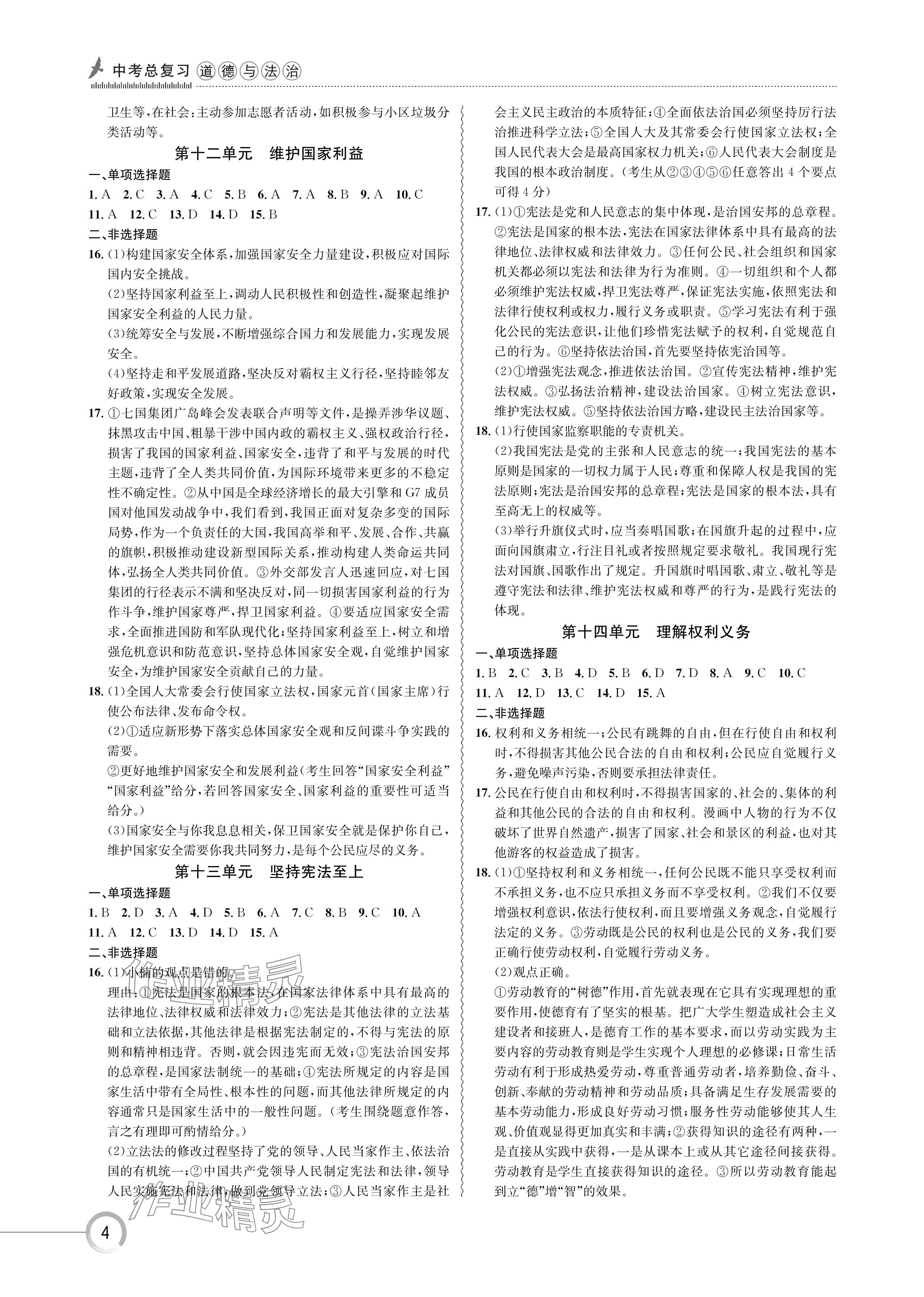 注:目前有些书本章节名称可能整理的还不是很完善,但都是按照顺序排列的,请同学们按照顺序仔细查找。练习册 2024年导学精练中考总复习道德与法治 答案主要是用来给同学们做完题方便对答案用的,请勿直接抄袭。