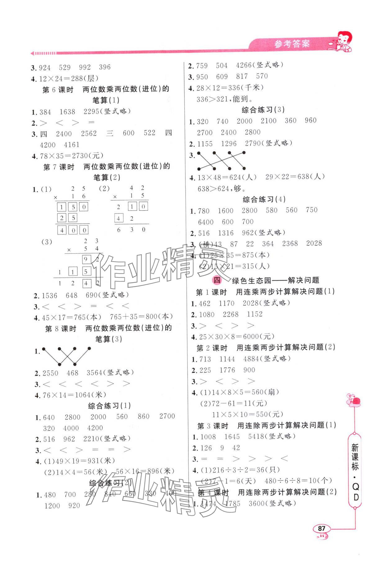 注:目前有些书本章节名称可能整理的还不是很完善,但都是按照顺序排列的,请同学们按照顺序仔细查找。练习册 2024年应用题天天练山东画报出版社三年级数学下册青岛版 答案主要是用来给同学们做完题方便对答案用的,请勿直接抄袭。