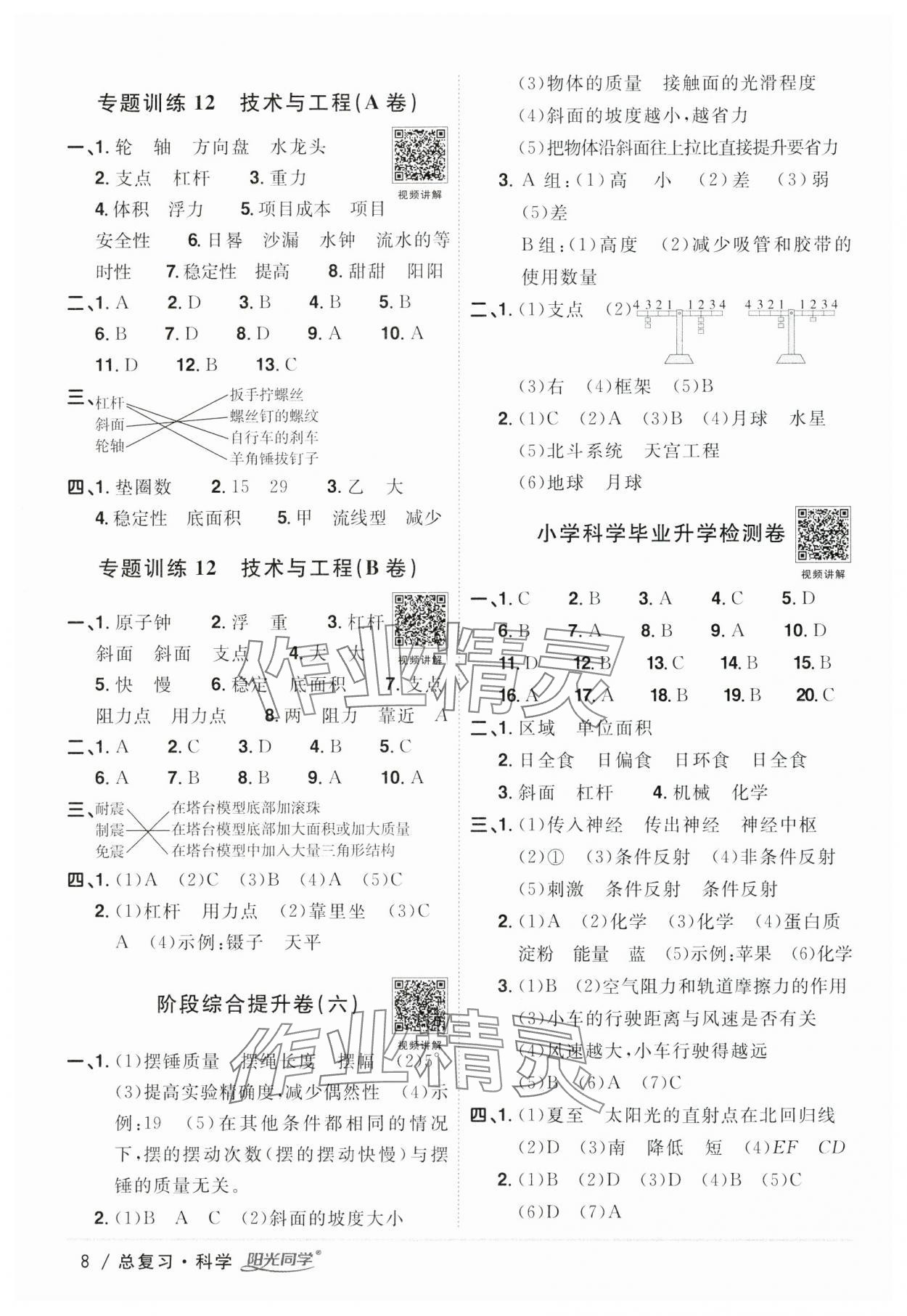 注:目前有些书本章节名称可能整理的还不是很完善,但都是按照顺序排列的,请同学们按照顺序仔细查找。练习册 2024年阳光同学小学毕业升学系统总复习科学 答案主要是用来给同学们做完题方便对答案用的,请勿直接抄袭。