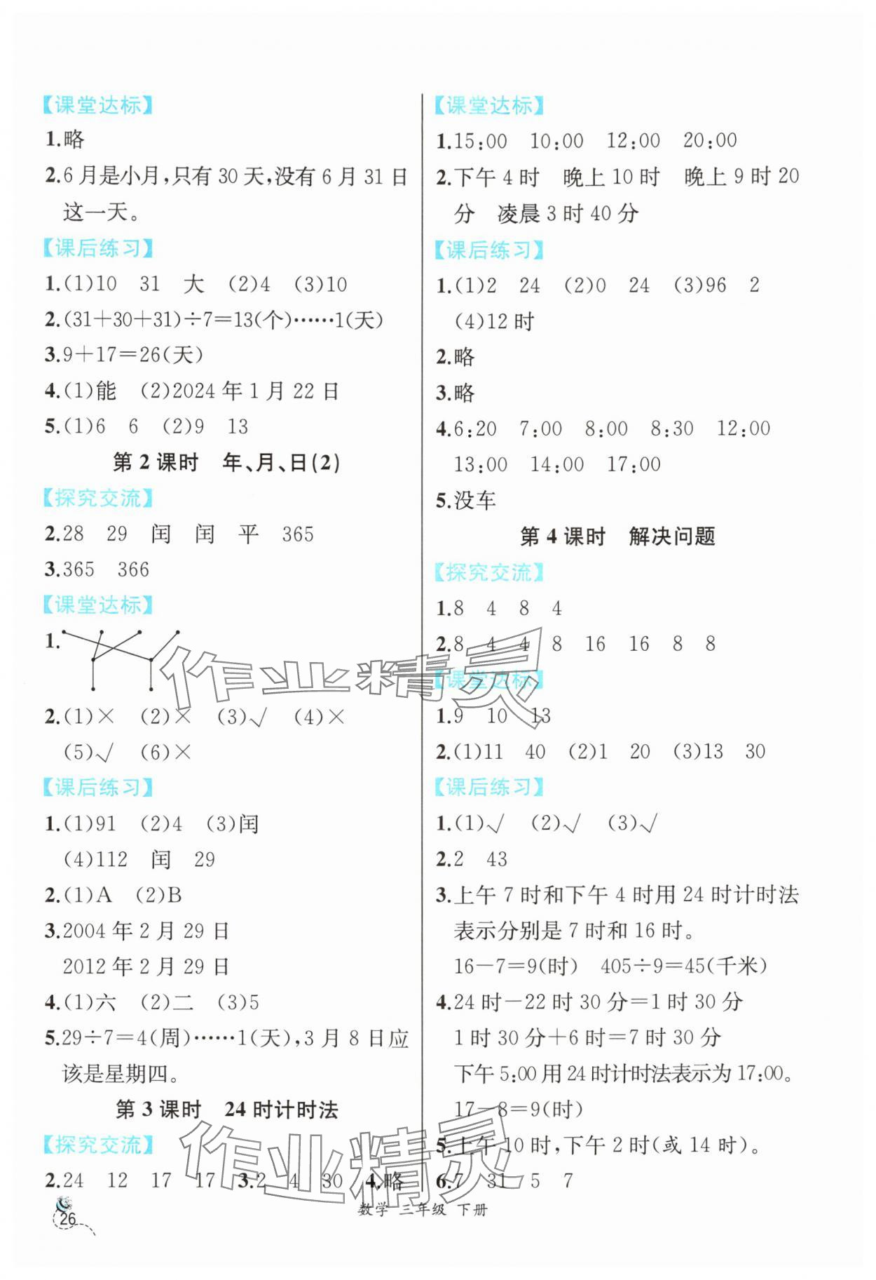2024年人教金学典同步解析与测评三年级数学下册人教版云南专版