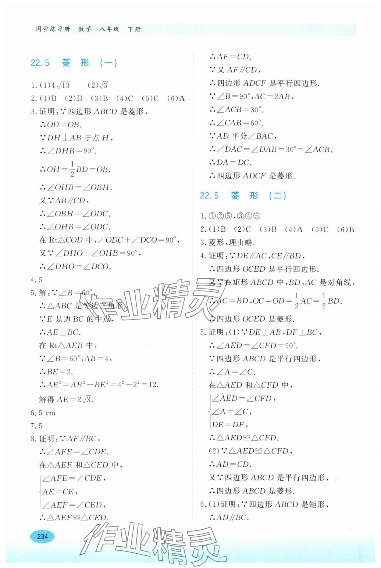 2024年同步练习册河北教育出版社八年级数学下册冀教版