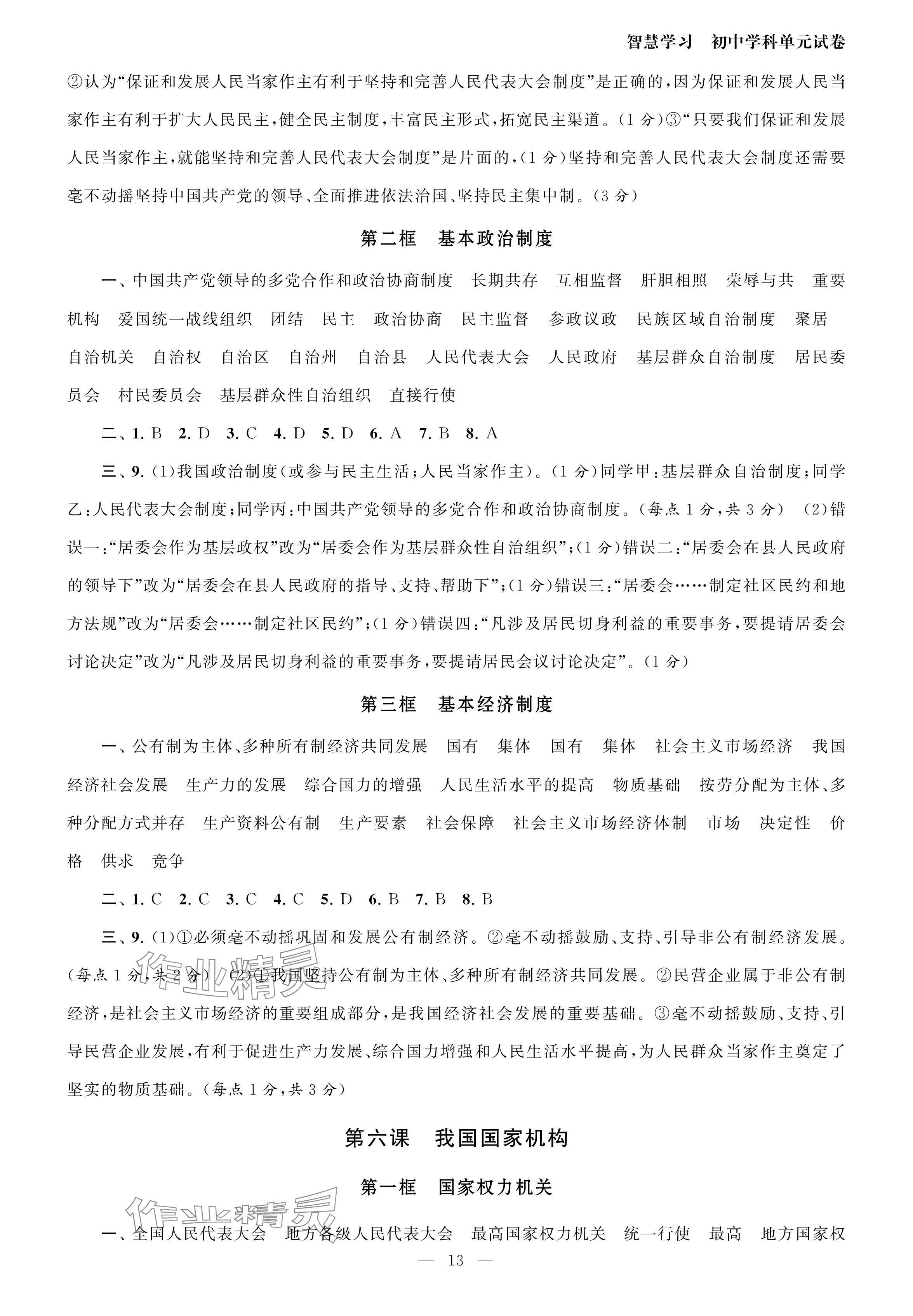 注:目前有些书本章节名称可能整理的还不是很完善,但都是按照顺序排列的,请同学们按照顺序仔细查找。练习册 2024年智慧学习初中学科单元试卷八年级道德与法治下册人教版 答案主要是用来给同学们做完题方便对答案用的,请勿直接抄袭。