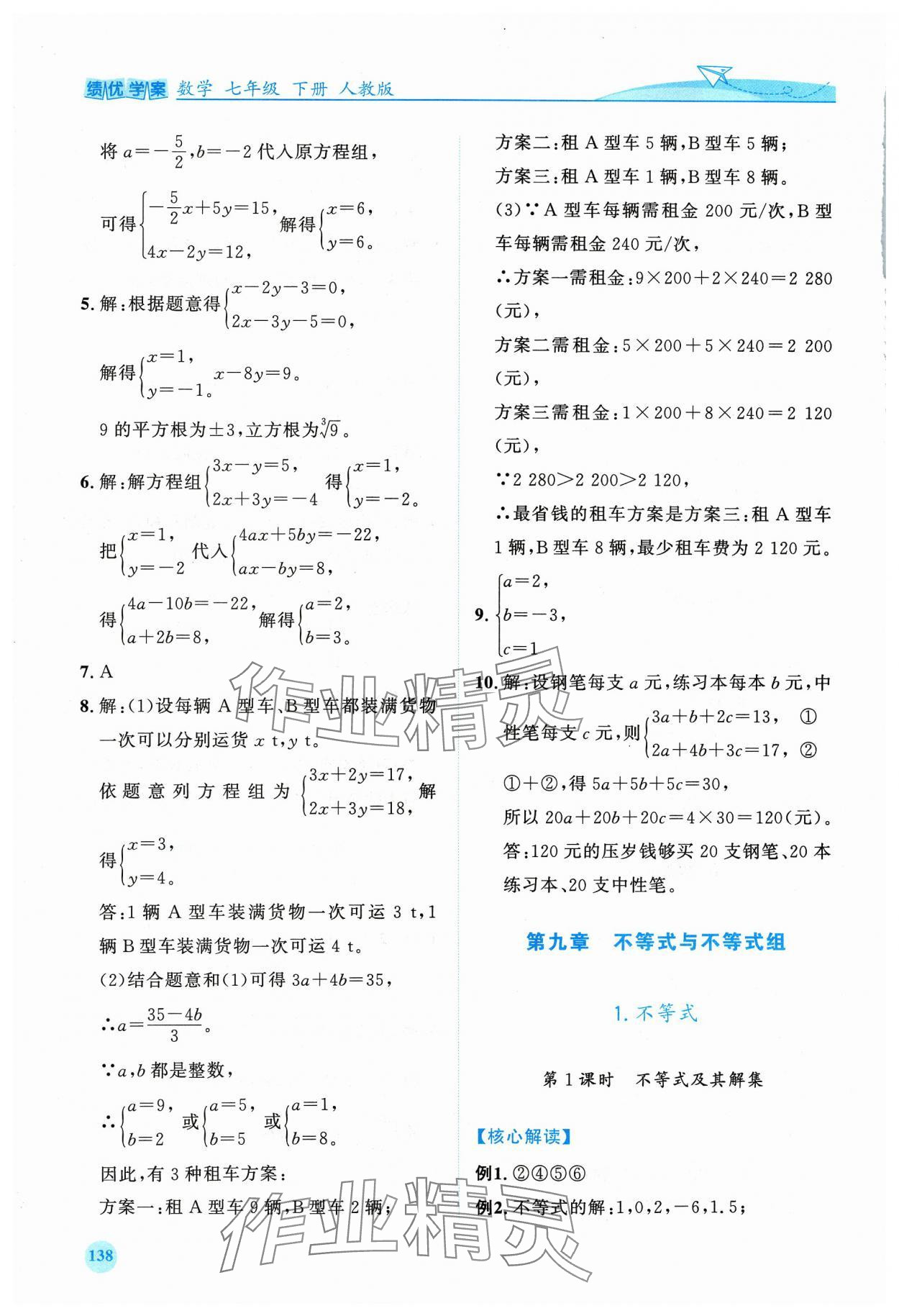 注:目前有些书本章节名称可能整理的还不是很完善,但都是按照顺序排列的,请同学们按照顺序仔细查找。练习册 2024年绩优学案七年级数学下册人教版 答案主要是用来给同学们做完题方便对答案用的,请勿直接抄袭。