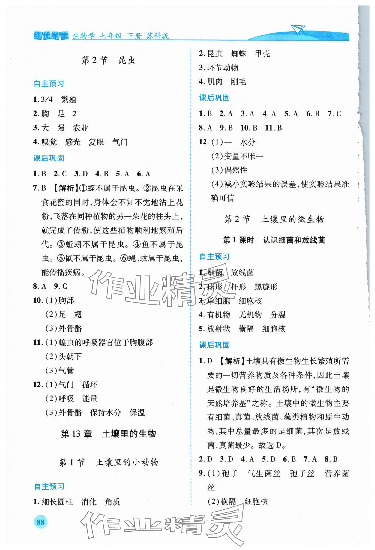 注:目前有些书本章节名称可能整理的还不是很完善,但都是按照顺序排列的,请同学们按照顺序仔细查找。练习册 2024年绩优学案七年级生物下册苏科版 答案主要是用来给同学们做完题方便对答案用的,请勿直接抄袭。