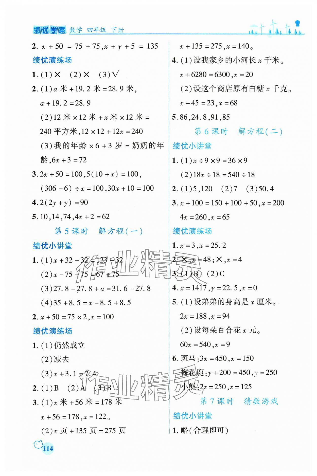 注:目前有些书本章节名称可能整理的还不是很完善,但都是按照顺序排列的,请同学们按照顺序仔细查找。练习册 2024年绩优学案四年级数学下册北师大版 答案主要是用来给同学们做完题方便对答案用的,请勿直接抄袭。