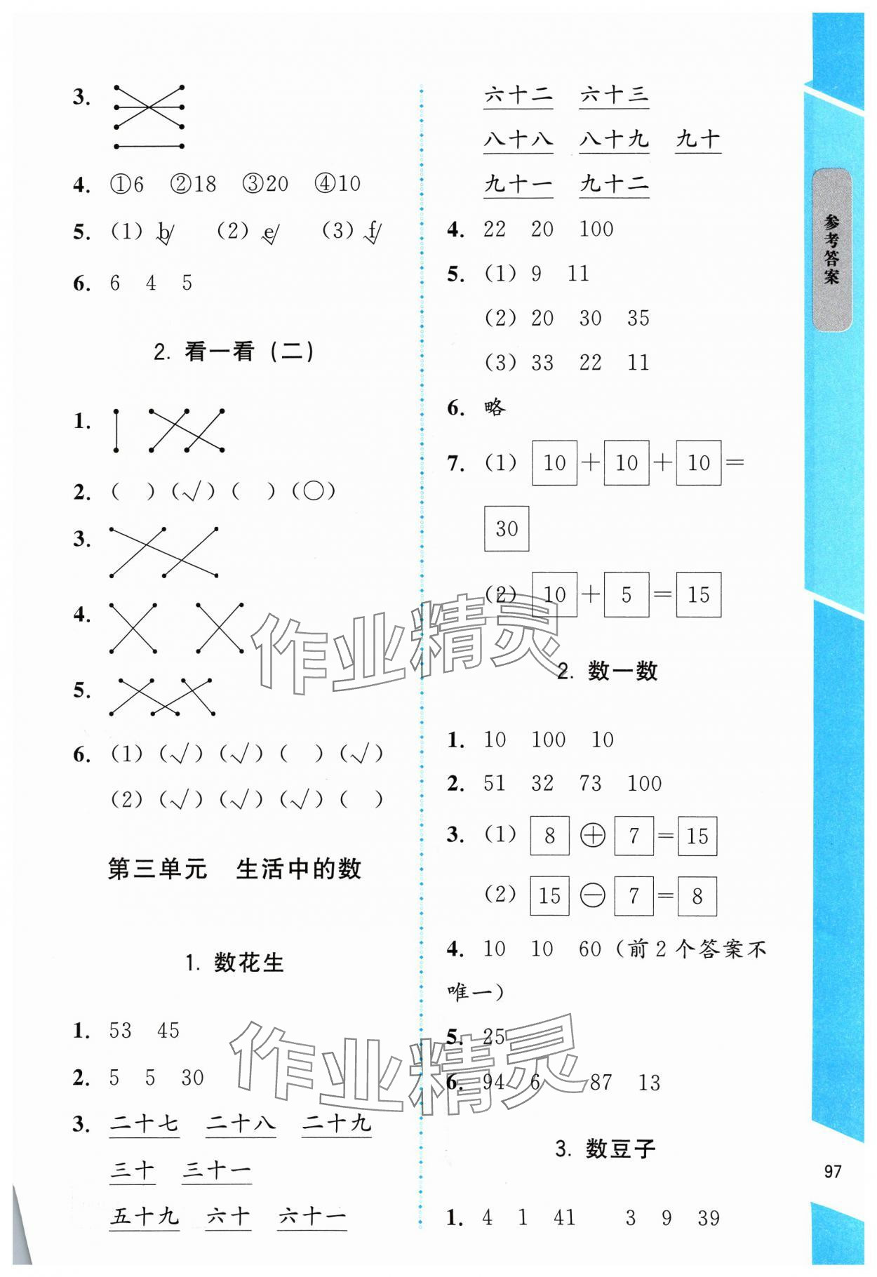 注:目前有些书本章节名称可能整理的还不是很完善,但都是按照顺序排列的,请同学们按照顺序仔细查找。练习册 2024年伴你成长北京师范大学出版社一年级数学下册北师大版山西专版 答案主要是用来给同学们做完题方便对答案用的,请勿直接抄袭。