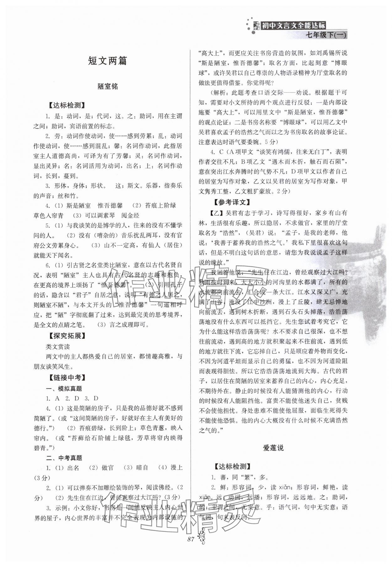 注:目前有些书本章节名称可能整理的还不是很完善,但都是按照顺序排列的,请同学们按照顺序仔细查找。练习册 2024年初中文言文全能达标七年级语文下册人教版 答案主要是用来给同学们做完题方便对答案用的,请勿直接抄袭。