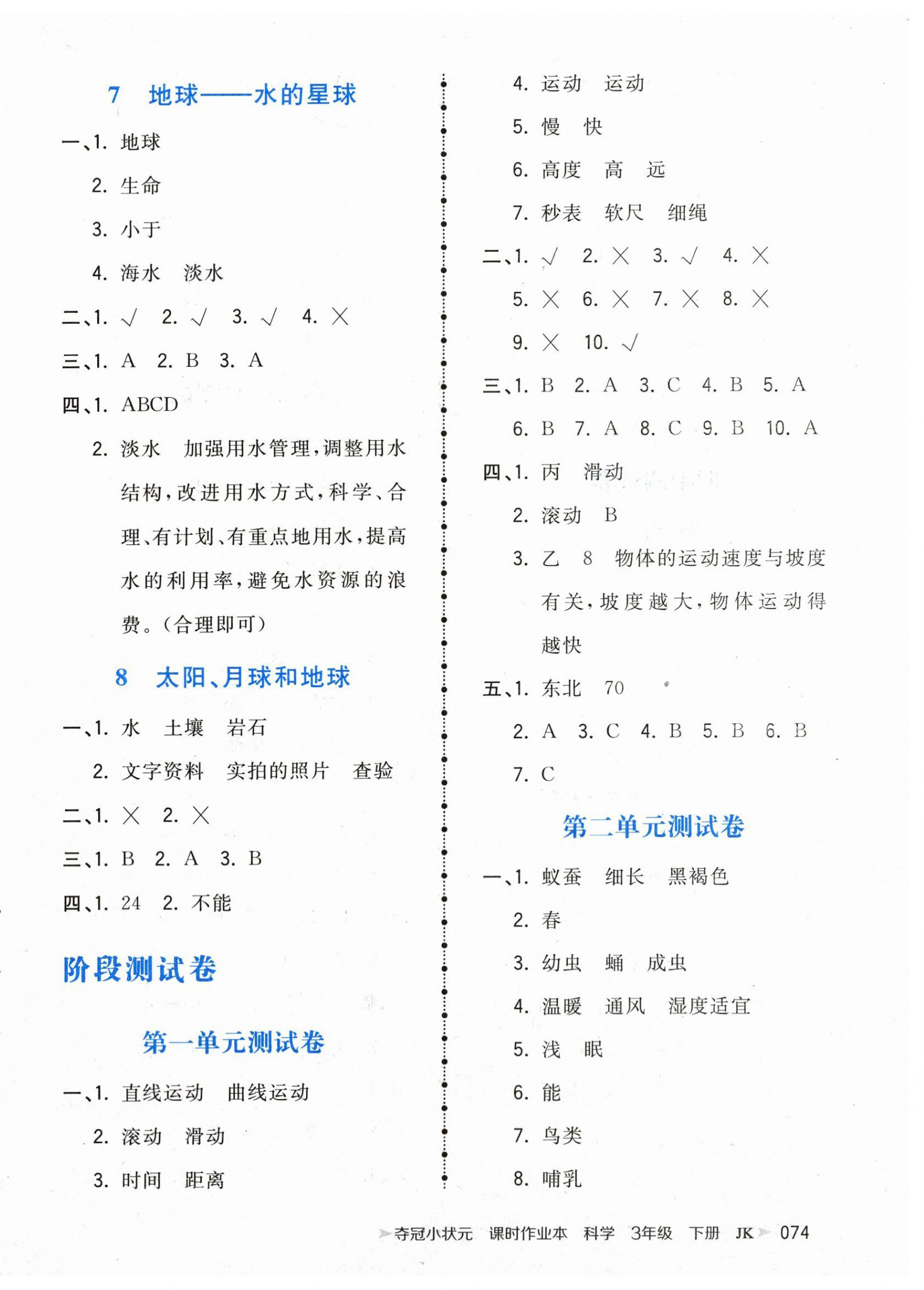 注:目前有些书本章节名称可能整理的还不是很完善,但都是按照顺序排列的,请同学们按照顺序仔细查找。练习册 2024年夺冠小状元课时作业本三年级科学下册教科版 答案主要是用来给同学们做完题方便对答案用的,请勿直接抄袭。
