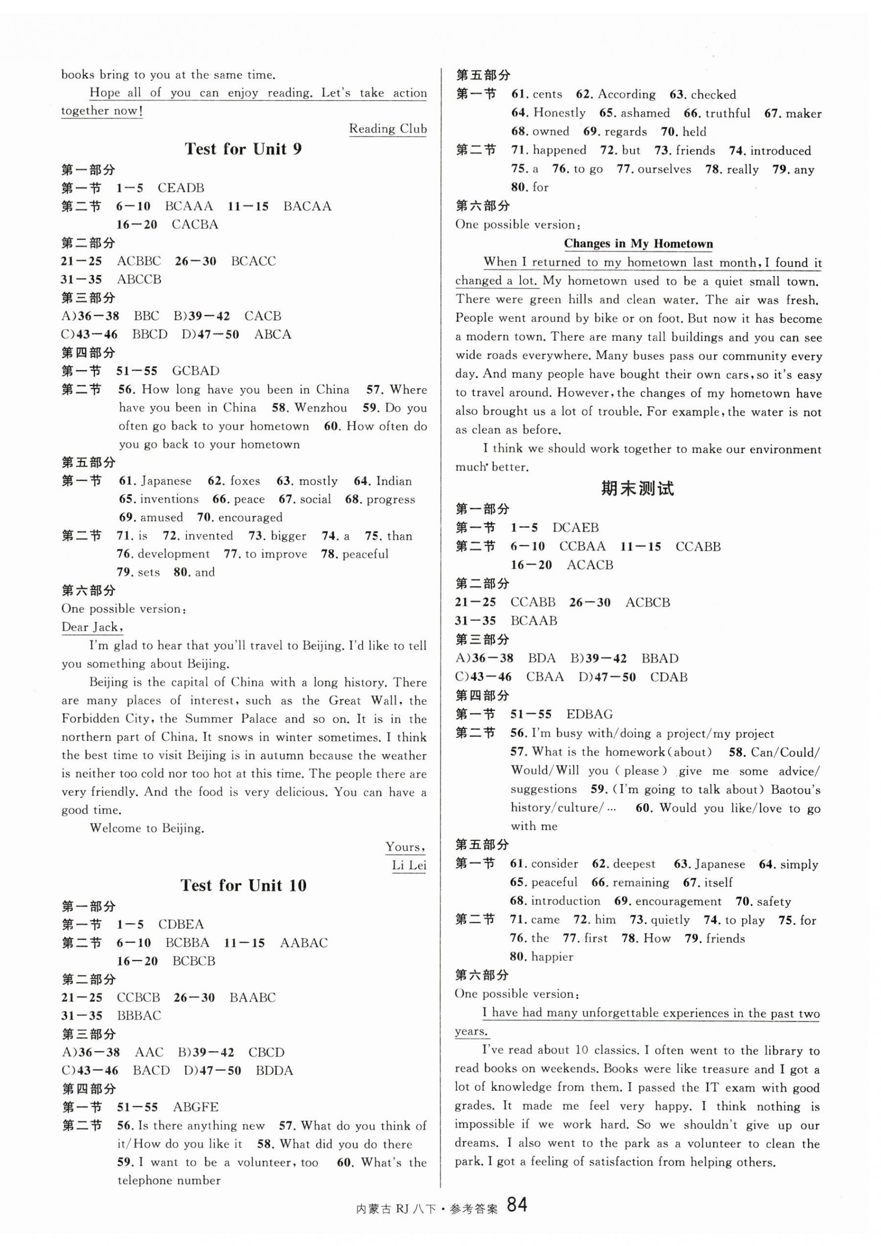 2024年名校课堂八年级英语下册人教版内蒙古专版