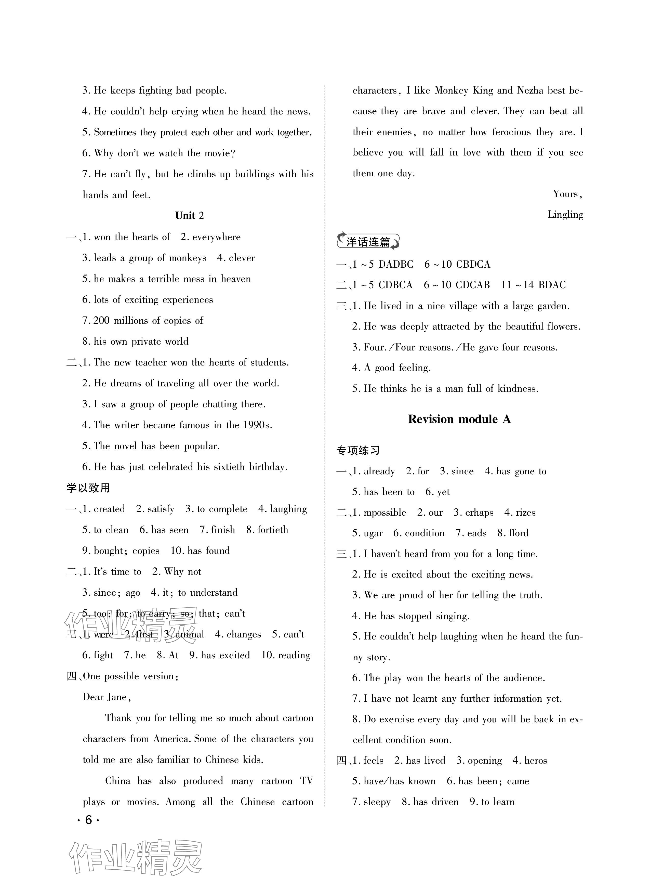 注:目前有些书本章节名称可能整理的还不是很完善,但都是按照顺序排列的,请同学们按照顺序仔细查找。练习册 2024年行知天下八年级英语下册外研版 答案主要是用来给同学们做完题方便对答案用的,请勿直接抄袭。