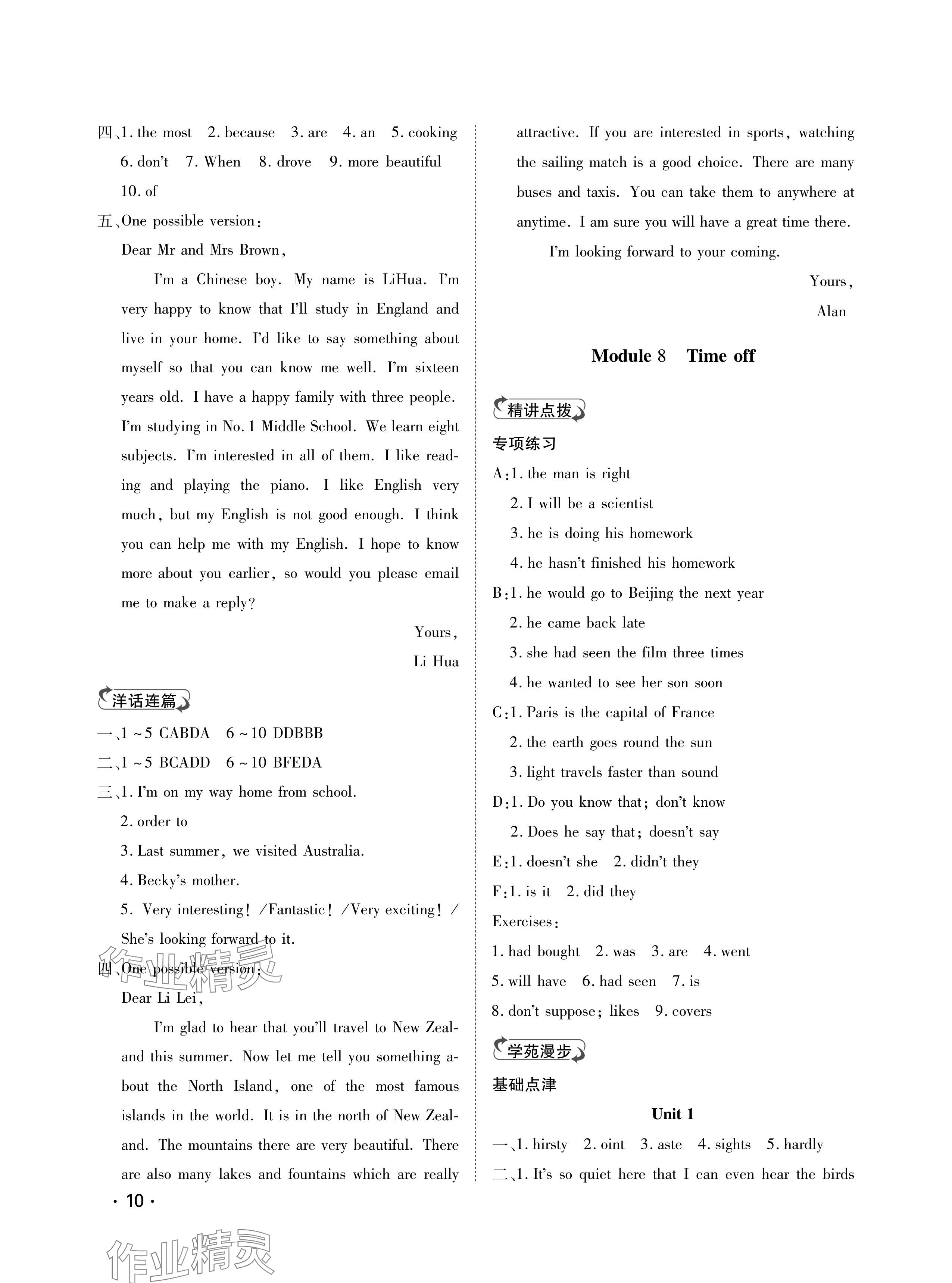 注:目前有些书本章节名称可能整理的还不是很完善,但都是按照顺序排列的,请同学们按照顺序仔细查找。练习册 2024年行知天下八年级英语下册外研版 答案主要是用来给同学们做完题方便对答案用的,请勿直接抄袭。