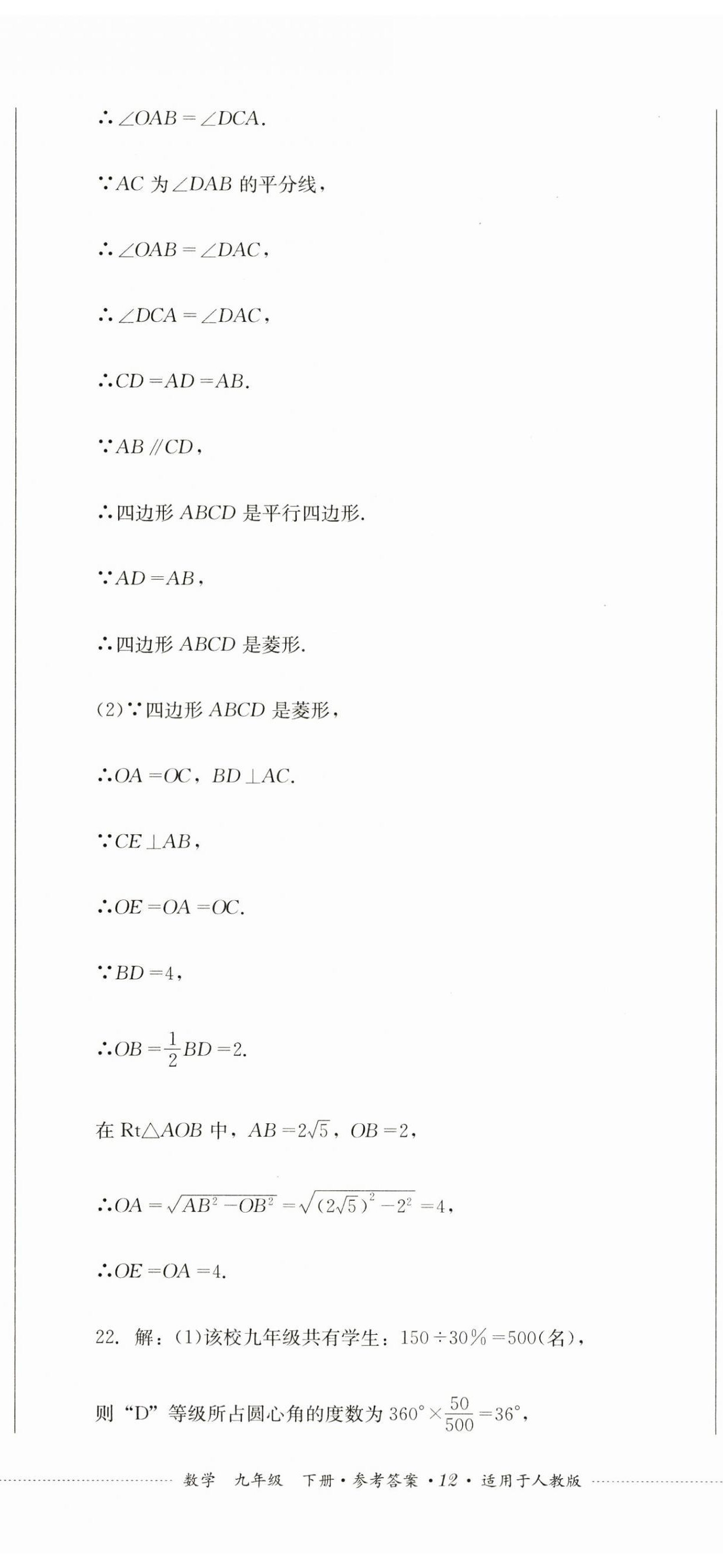 2024年学情点评四川教育出版社九年级数学下册人教版