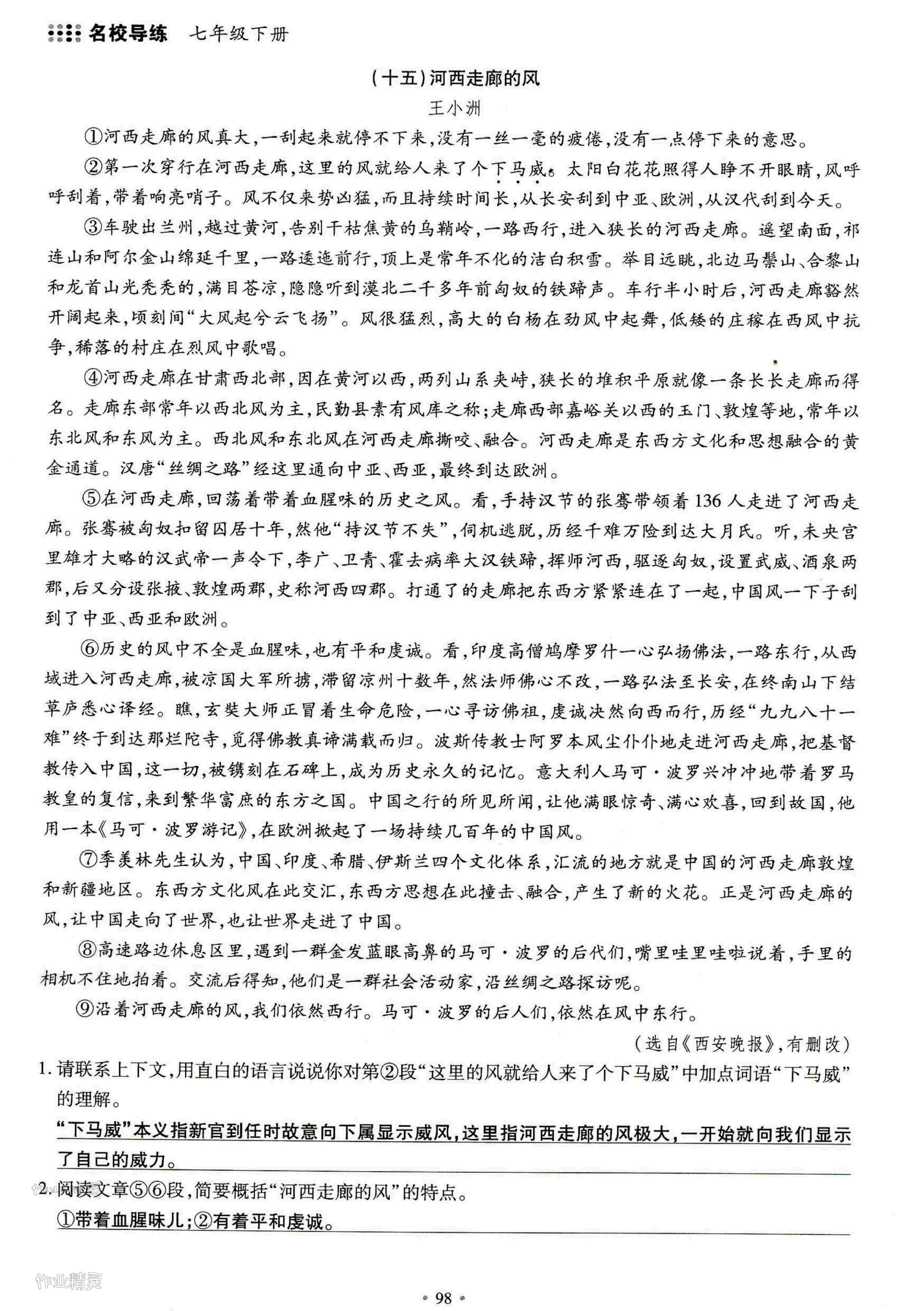 - 参考答案第98页